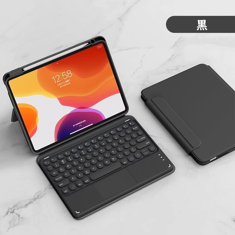 【在庫処分】HENGHUI 磁気吸着 iPad 10 2022 10.9 インチ キーボード ケース 縦置き タッチパッド搭載 丸型キー 背面カバー 取り外し可能 Apple Pencil 収納 アイパッド10 分離式 キーボード付き マグネット カバー (iPad 第10世代, 黒) | nico3588