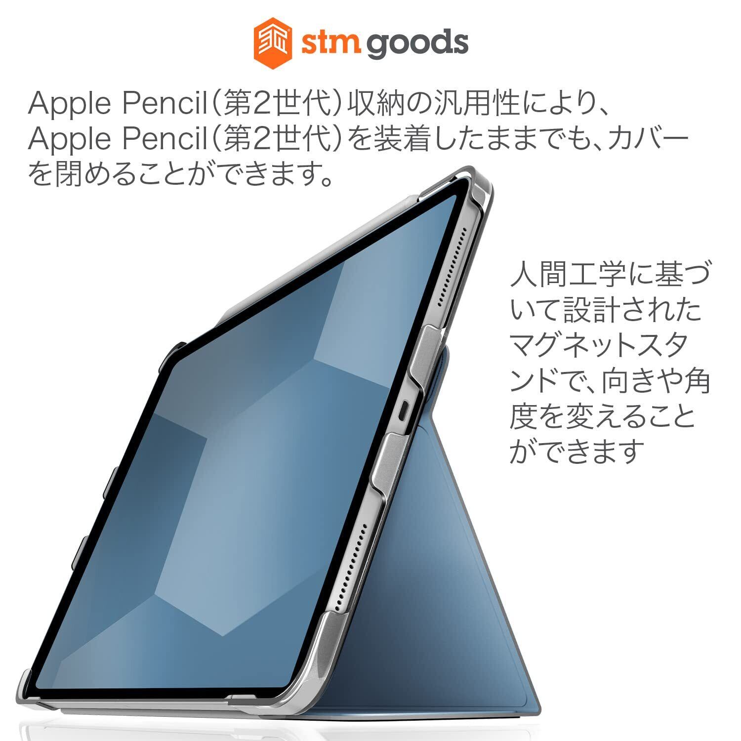 【2022最新】STM Studio for Apple iPad Pro 11インチ M2 第6世代 2024年モデル(第5世代、第4世代)/iPad Pro 11インチ(第4世代/第3世代/第2世代/第1世代) iPad Air M2対応、頑丈なスマートケース、Apple Pencilホルダー付属瞬時にオン/オフできる磁気スタンド カバー付き、人間工学に基づいた耐衝撃性、耐久性に 透明な背面 (ブルー) | nico3588