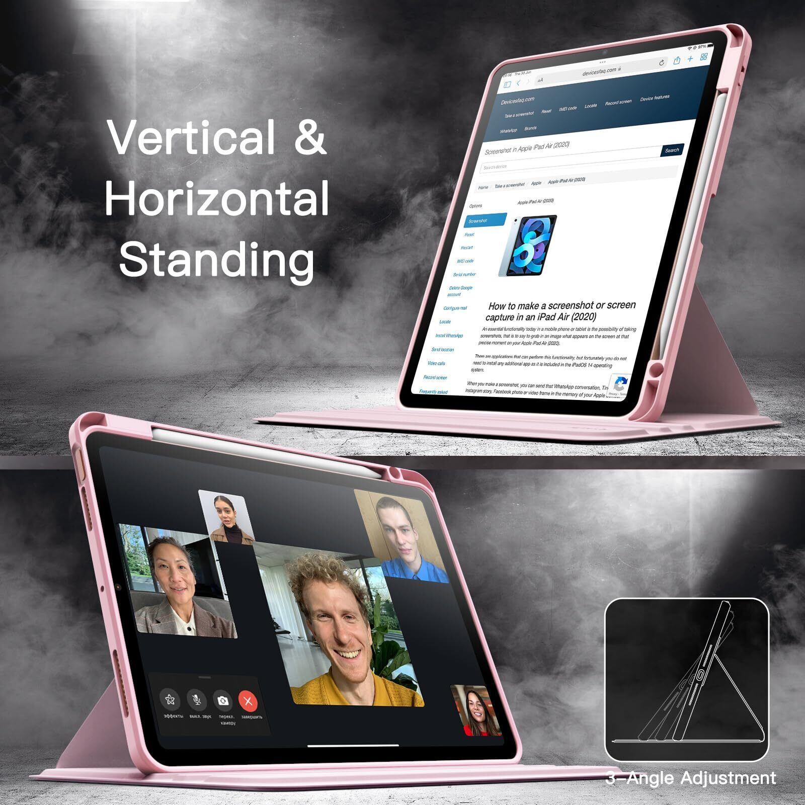 JETech 回転ケース iPad Air 11インチ M3/M2 (2025/2024)、iPad Air 5/4用 (2022/2020、第5/4世代、10.9インチ) Pencilホルダー付き 360°回転保護 スタンドカバー クリアバック 自動ウェイク/スリープ (ピンク)