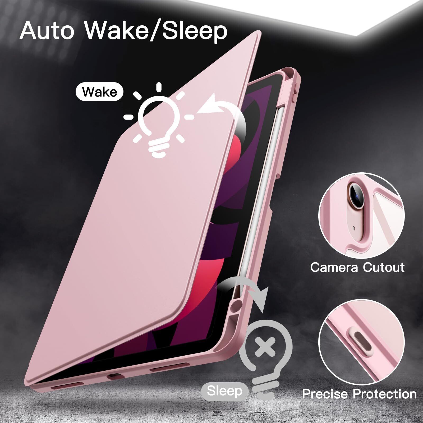 【特価商品】JETech 回転ケース iPad Air 11インチ M3/M2 (2025/2024)、iPad Air 5/4用 (2022/2020、第5/4世代、10.9インチ) Pencilホルダー付き 360°回転保護 スタンドカバー クリアバック 自動ウェイク/スリープ (ピンク)