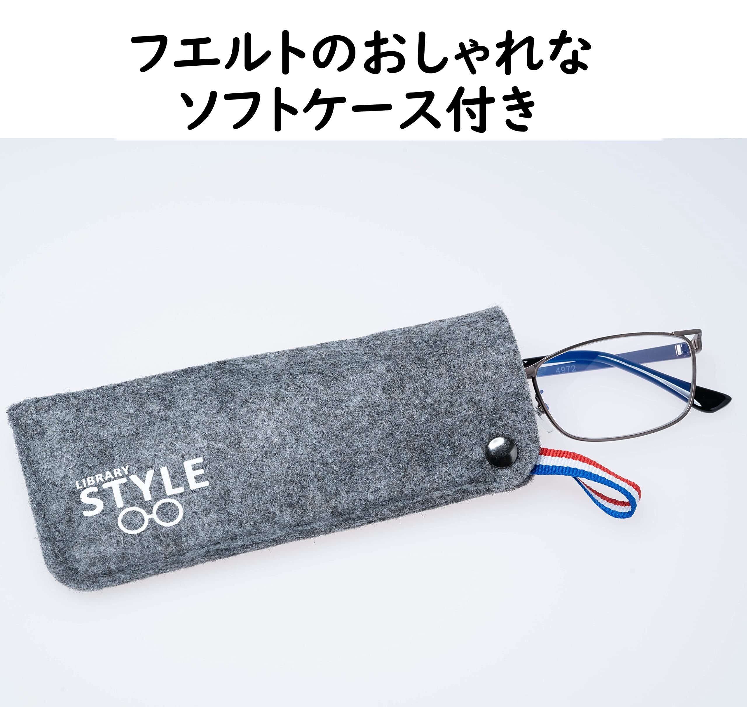 マットライトガンメタルとブラックのコンビがシャープです。 ブルーライトカットレンズを使用しています。 おしゃれな専用ソフトケース付きです。