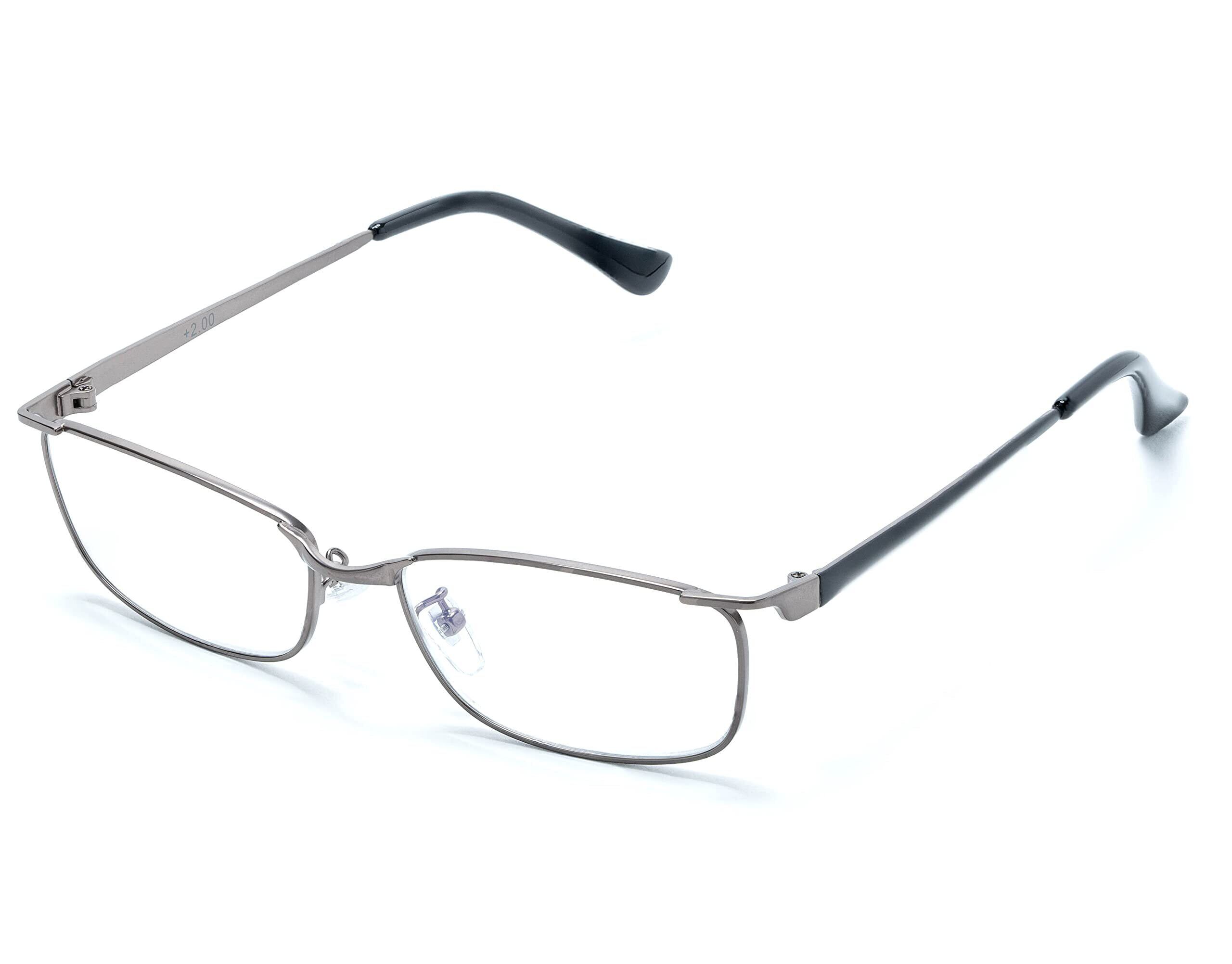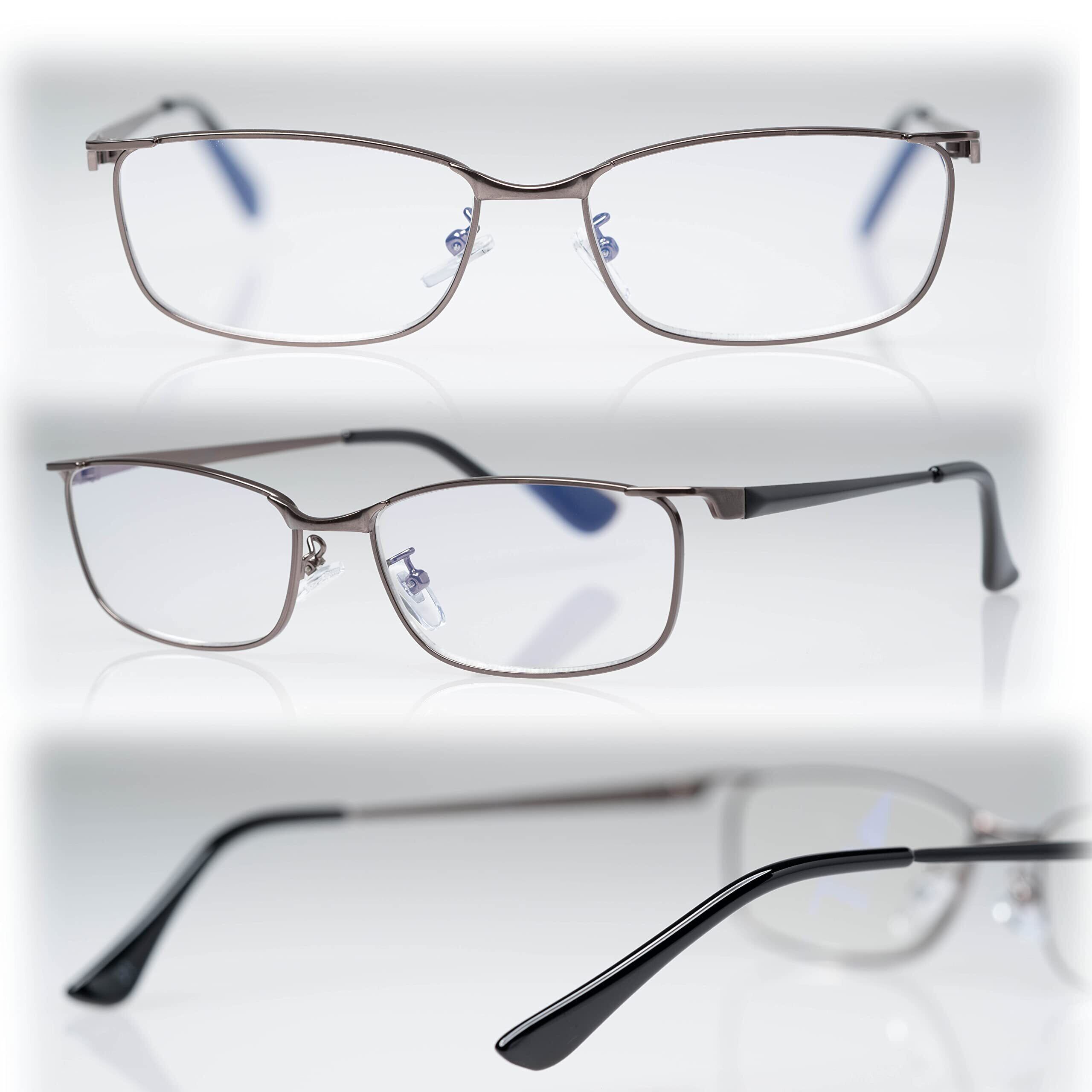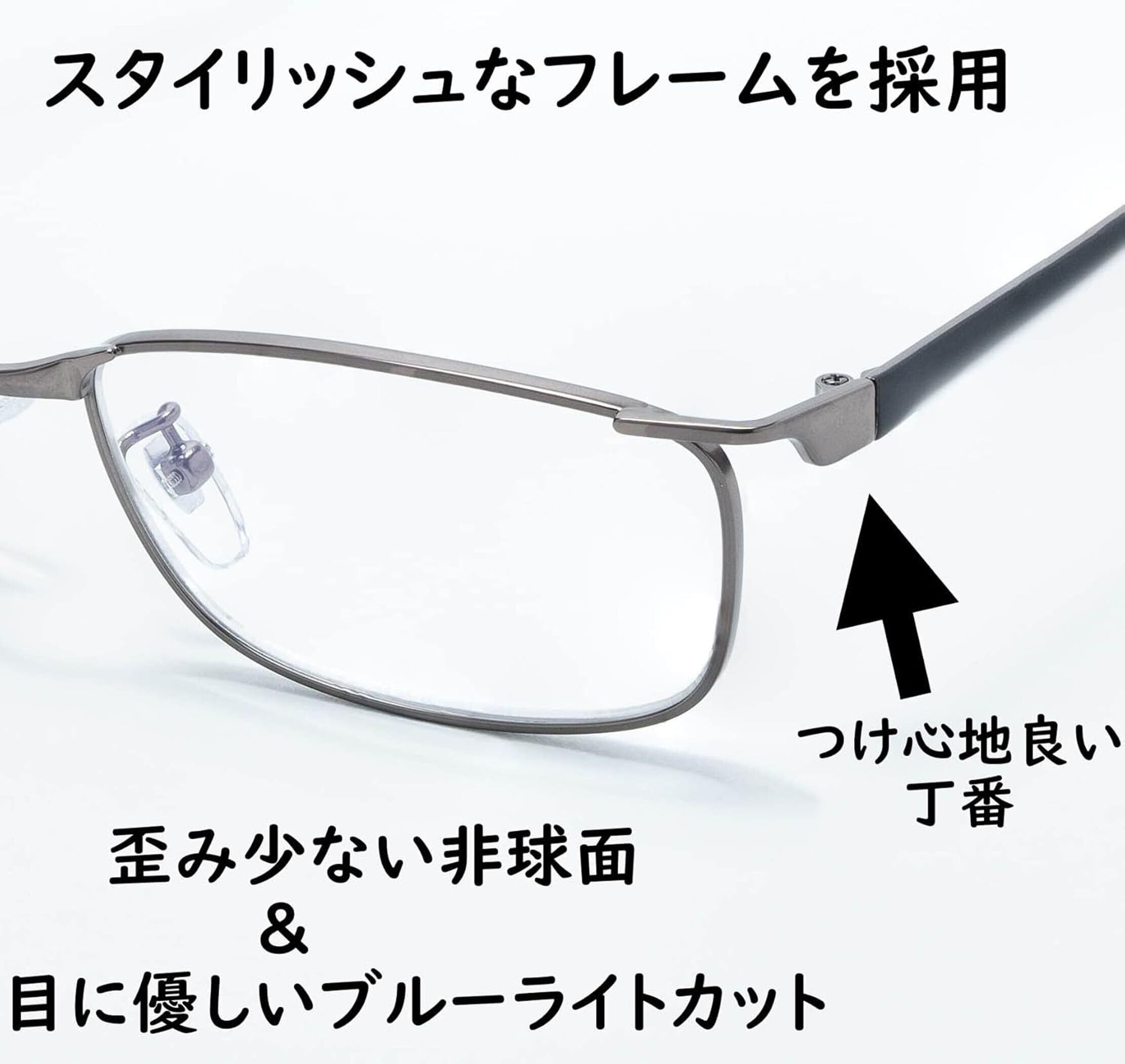メイガン(Meigan) 老眼鏡 メンズ おしゃれ フレーム ライブラリースタイル 非球面レンズ ブルーライトカット 軽量 スクエア メタル 度数 +1.00 497210