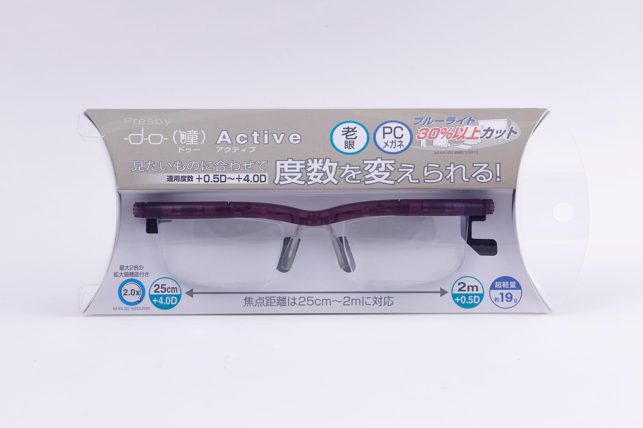 【新着商品】[PRESBY] 【旧パッケージ】 自由に度数調整できる老眼鏡 プレスビー ドゥーアクティブ 老眼鏡 バイオレット 左右のつまみを回すだけで度数調節 度数 +0.5D~+4.0D 遠視 老眼