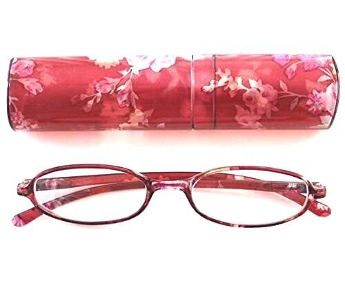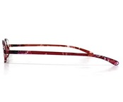 オーバル型に細いフレームが軽量で使いやすく、優しい印象のあるリーディンググラスです。上品なフラワーデザインでさりげなくエレガントな雰囲気に。メガネと同柄デザインのプラスティックのハードケースは、スリムタイプなのでバッグの中でもかさばらず携帯にも便利です。