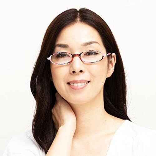 オーバル型に細いフレームが軽量で使いやすく、優しい印象のあるリーディンググラスです。上品なフラワーデザインでさりげなくエレガントな雰囲気に。メガネと同柄デザインのプラスティックのハードケースは、スリムタイプなのでバッグの中でもかさばらず携帯にも便利です。