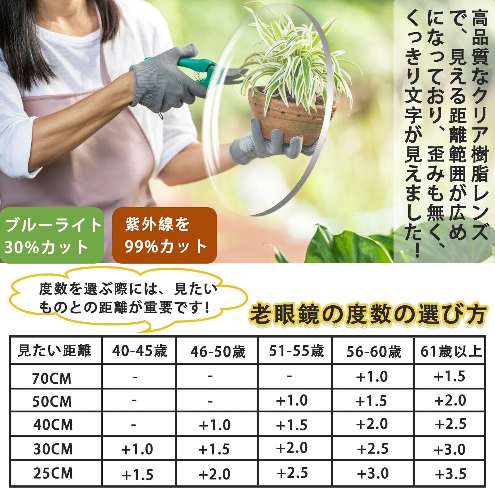 ブルーライト30%カット - 老眼鏡のレンズにはブルーライト対策とUVカット加工が施されており、携帯電話やパソコンからの有害なブルーライトを30%カットし、目を保護します。 携帯電話やパソコン、テレビなどの電子機器を長時間使用する必要がある方に最適です。敬老の日、父の日、母の日、クリスマスなど、ご家族やご友人へのプレゼントに最適です。
