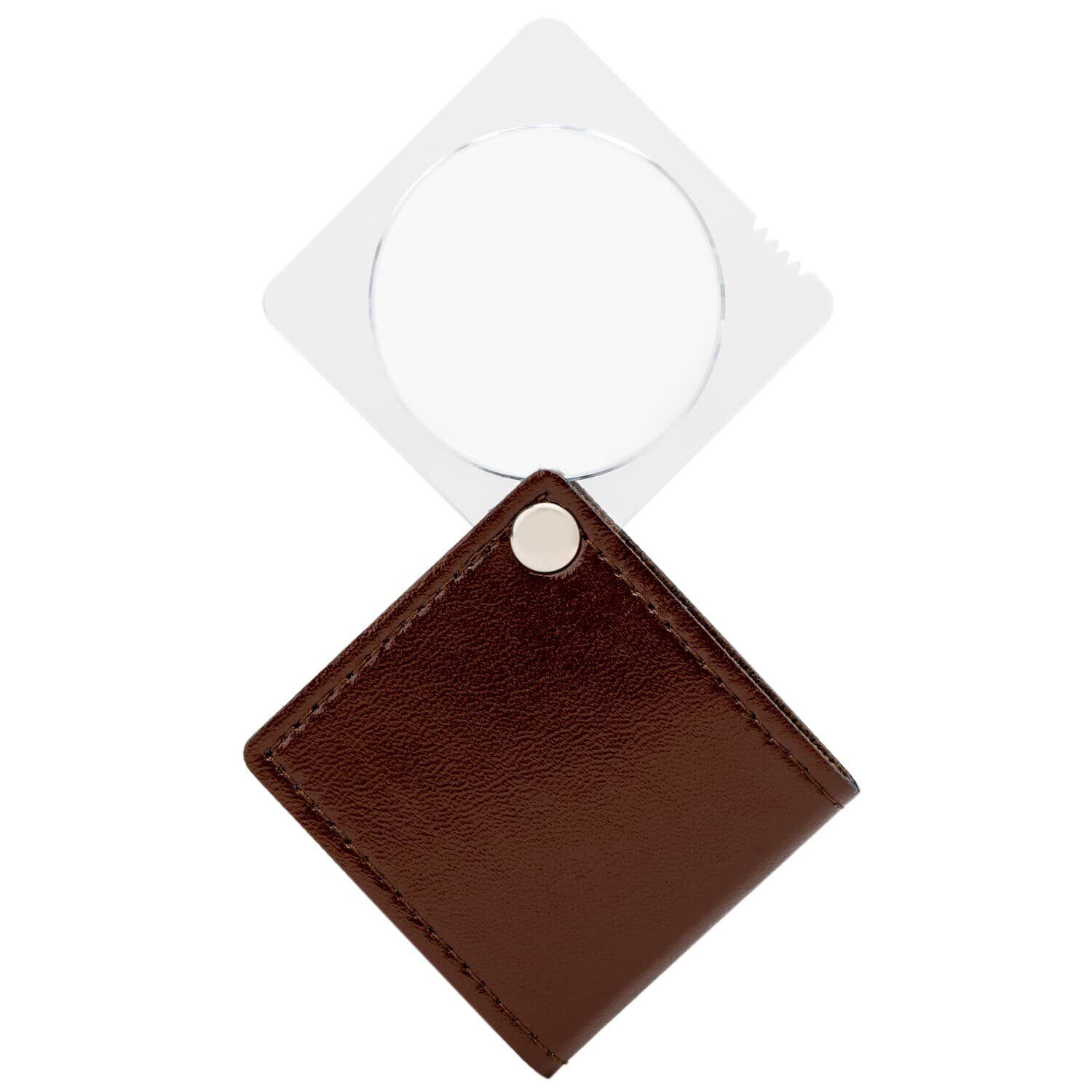 倍率3.5倍の持ち運びに便利な携帯用ルーペ。折りたたんでレンズを収納できるケース付き