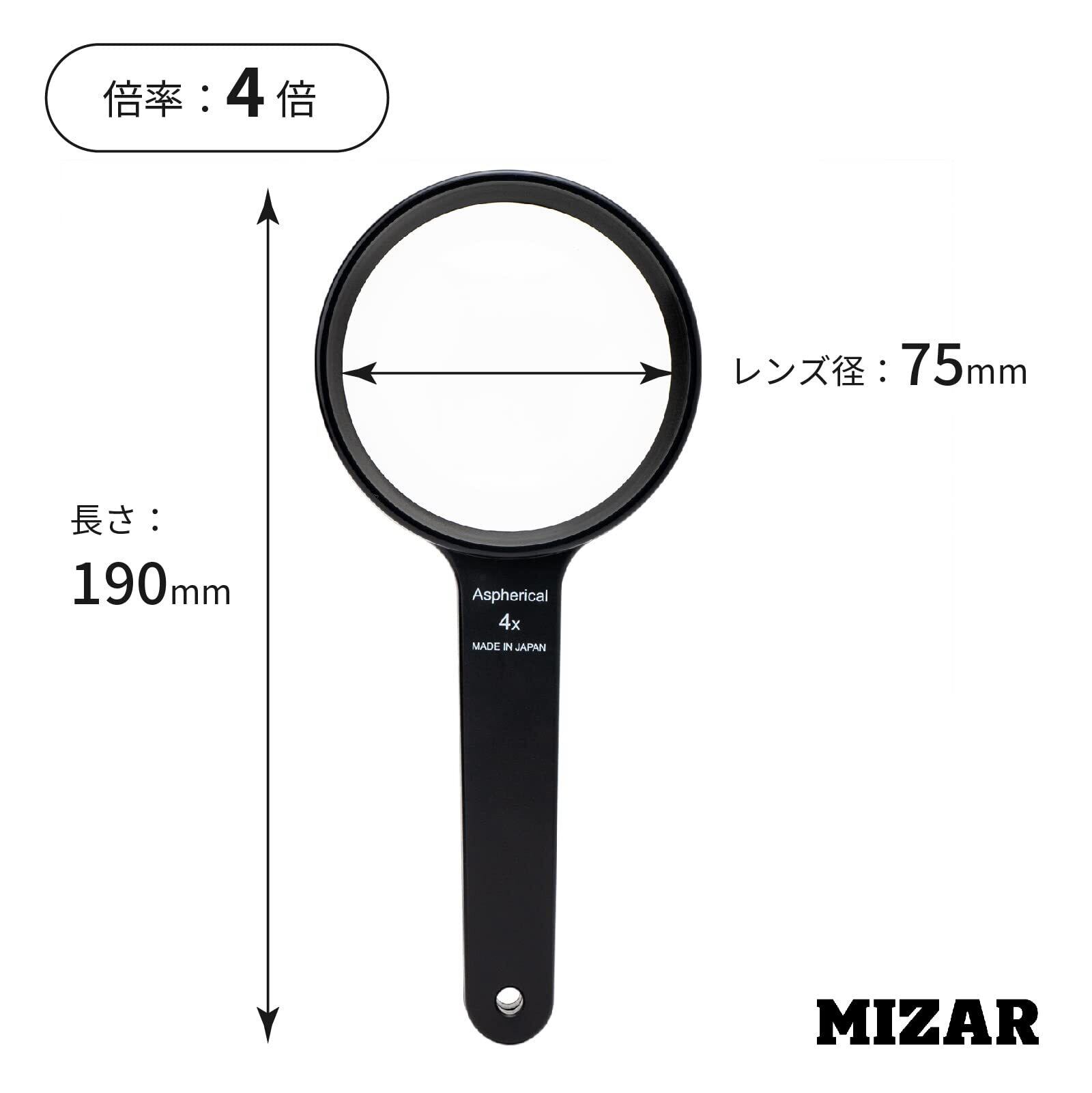 MIZAR-TEC(ミザールテック) ルーペ 4倍 手持ちルーペ 日本製 非球面レンズ レンズ径 75mm 黒 RHG-75