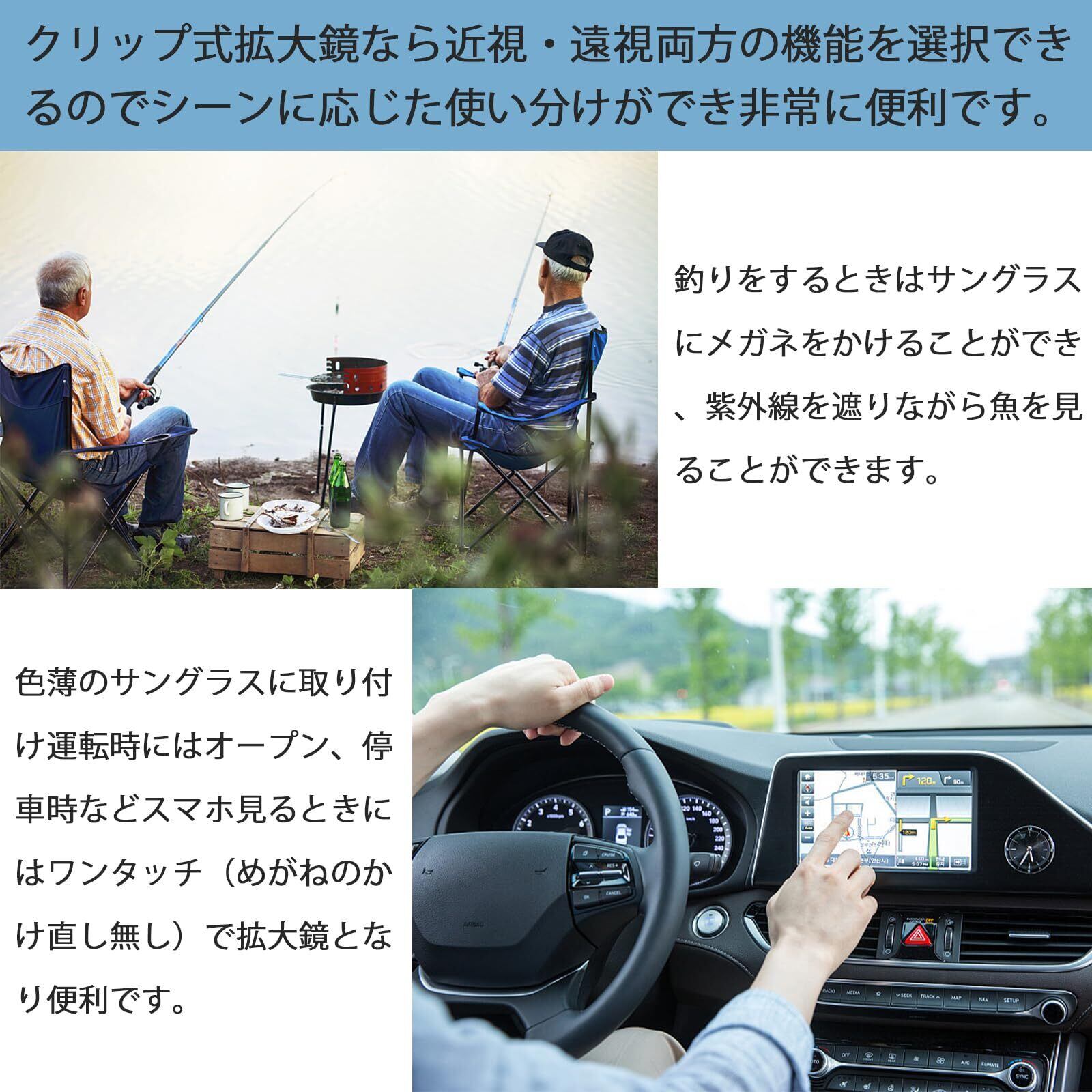クリップ式 拡大鏡 - 今お使いのメガネに直接クリップして、倍率を上げることができるレンズです。レンズを上下に反転させることで、遠近両用 。このメガネが必要ないときは、無料の軽量メガネケースに入れておけば、便利で保護されます。