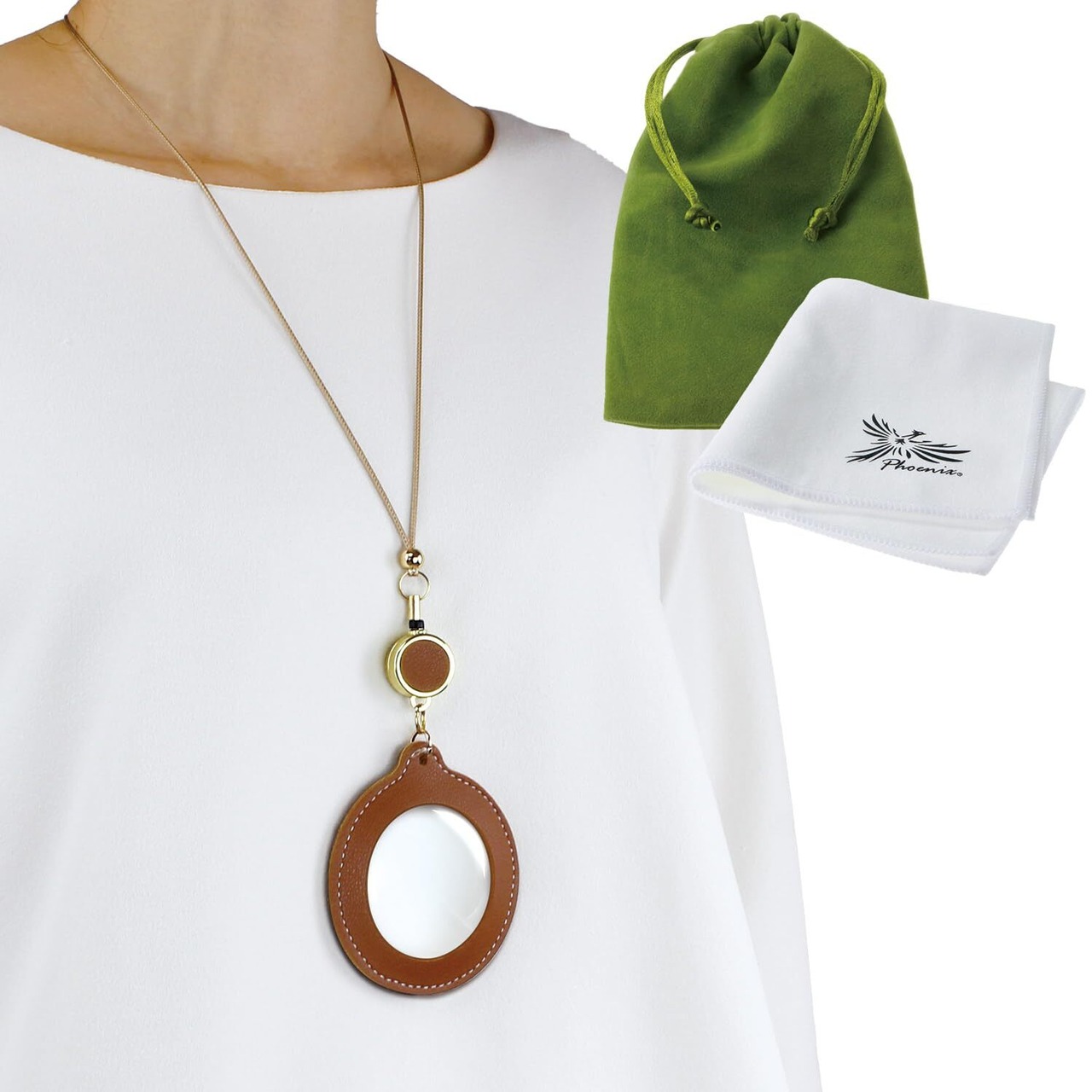 PhoenixLoupe 【3倍率】 ネックレス ペンダント ルーペ 拡大鏡 リール紐 老眼 おしゃれ レディース プレゼント チャームルーペ ちょい足し