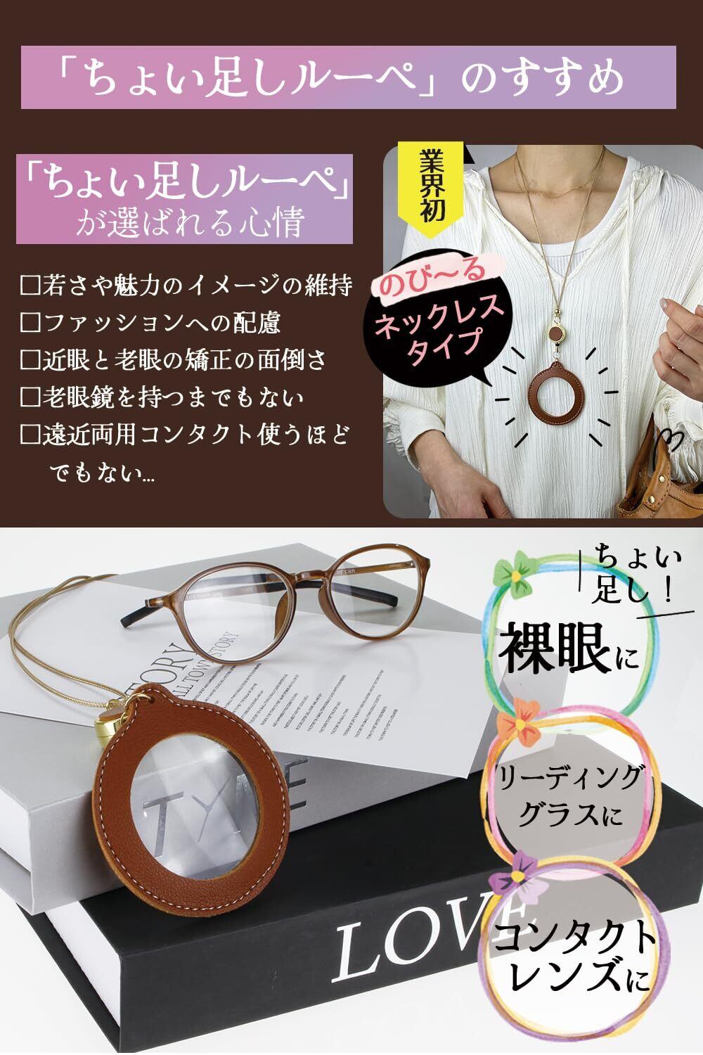 * 【手元がぼんやりしてイライラしませんか?】日常生活で文字がぼやけて見えづらい!!夕方になると特にぼんやりが増して見えづらい。衣類タグや製品表示、説明文などなど…日常生活での視力のお悩みにそっと寄り添い、着用していてもお洒落なネックレスタイプのルーペを開発しました。