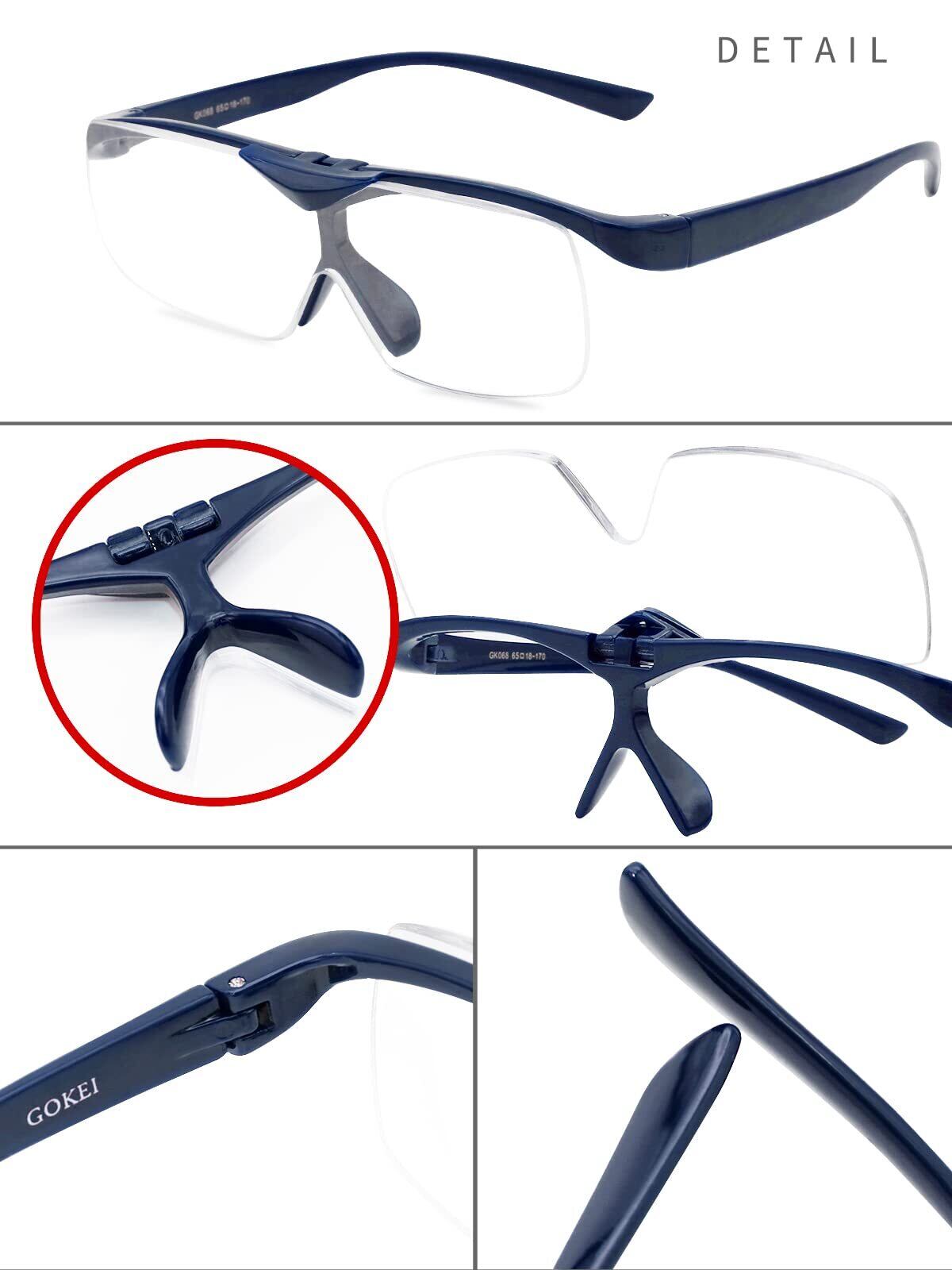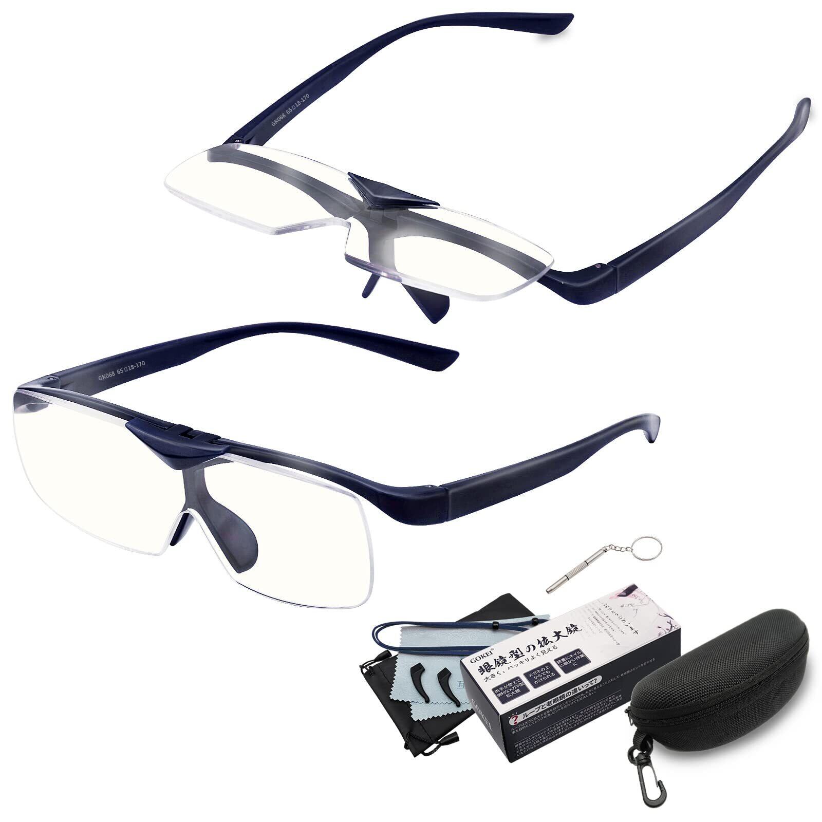 GOKEI 拡大鏡 めがね ルーペメガネ 跳ね上げ 【ブルーライトカット 1.6倍 7点セット】 ハネアゲ ルーペ メガネ型ルーペ めがね かくだい鏡メガネ フリップアップ 輻射防止 眼鏡型の拡大鏡 メガネ ルーペ型眼鏡 拡大眼鏡 拡大 鏡 大きく見える 細かい作業 ブルー-Bluelight