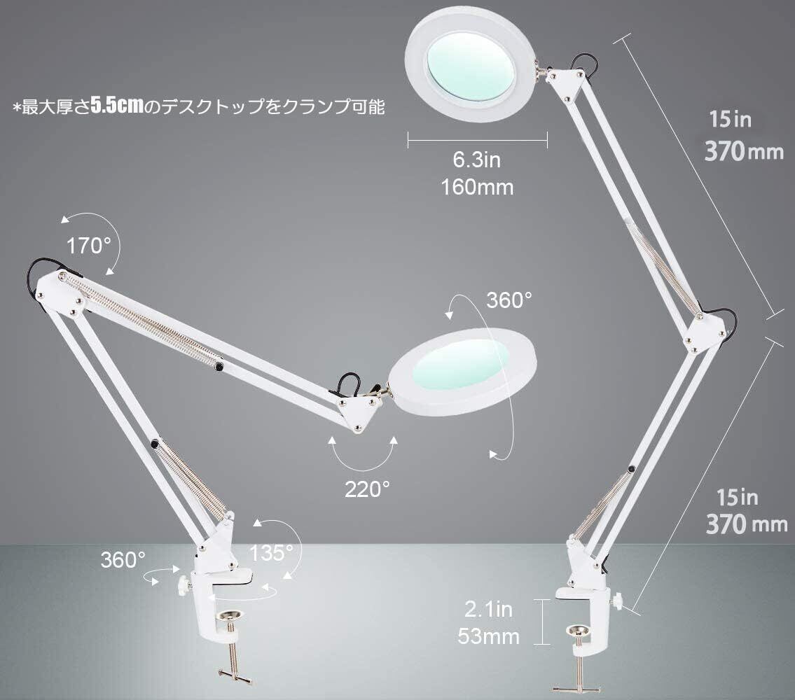【幅広い用途】この拡大鏡ランプは、小さな部品の確認、本の読み取り、はんだ付け、モデルの作成、縫製などに役立ちます。老化した目がある人は、新聞を読むことができる。閲読室、オフィス、芸術工房、建築設計室など場所に適用します。