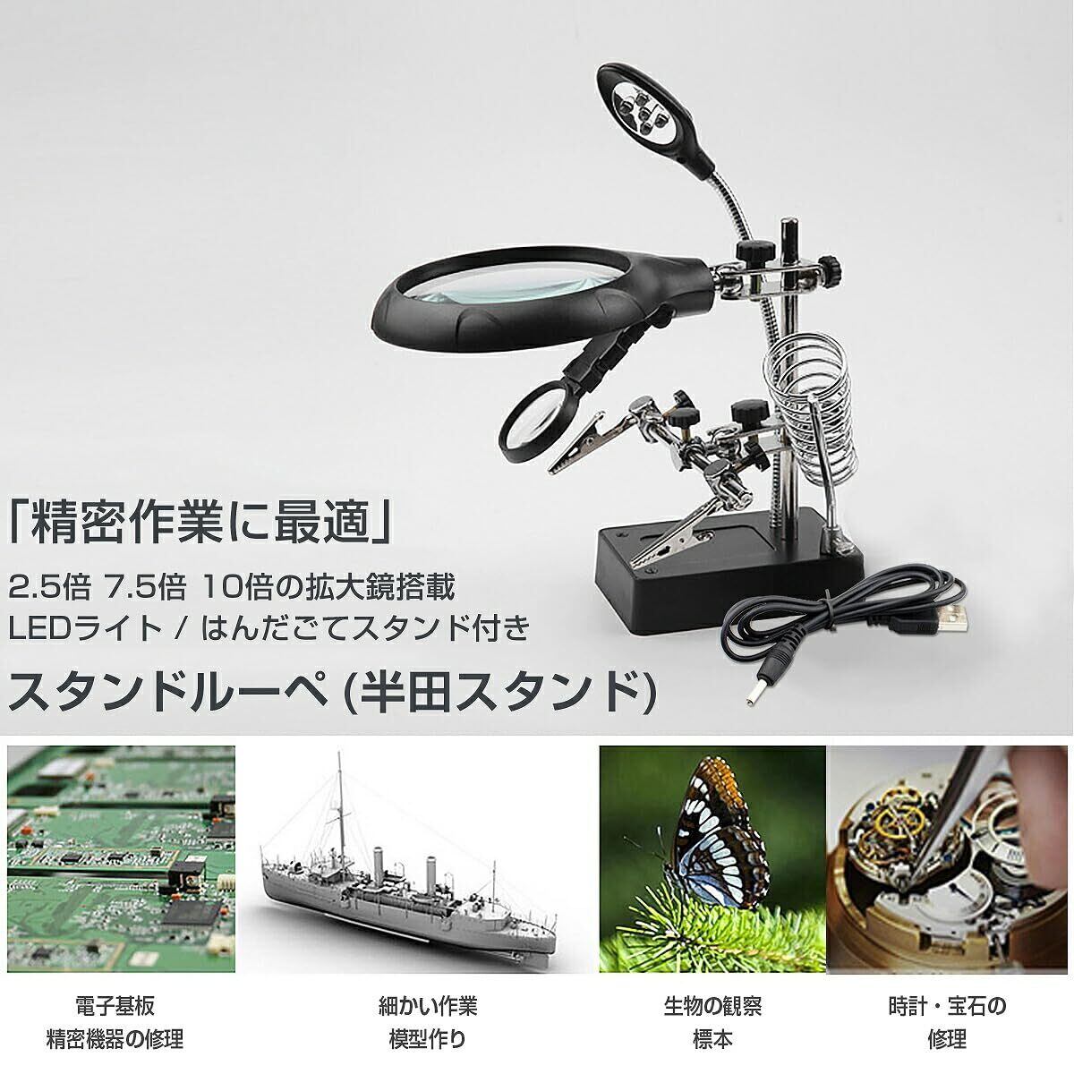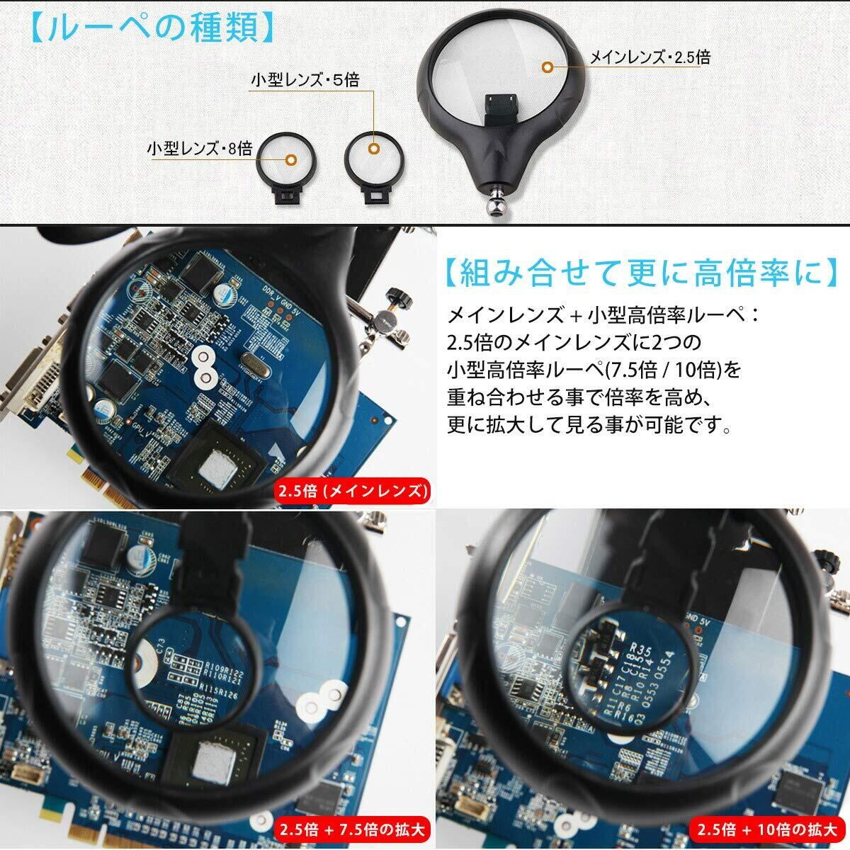 .A 多機能作業台 拡大ルーペ 2.5倍 7.5倍 10倍レンズ 精密作業用 LEDライト付き スタンドルーペ フレキシブル 拡大鏡 電子基板 精密機器