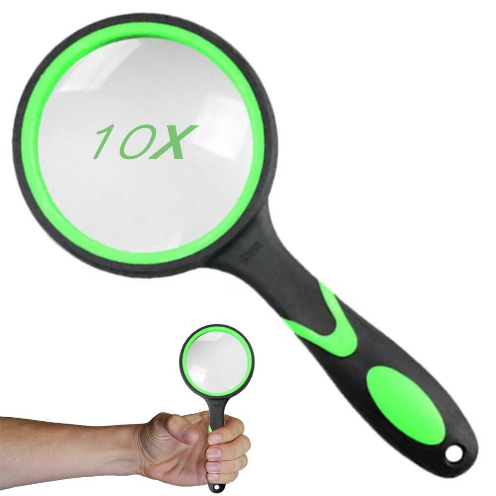 手持ちルーペ 拡大レンズ 拡大鏡 虫眼鏡 レンズ径50mm 高倍率タイプ 10倍拡大 手持ち読書拡大鏡 見やすい 携帯便利 高齢者及び専門家使用可能 趣味観察/読書/新聞/地図/科学教室に使用 (グリーン)