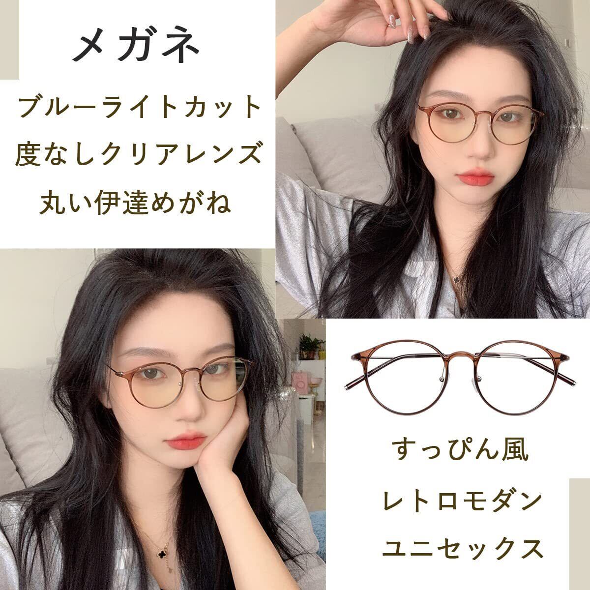 【数量限定】[Dollger] ブルーライトカット メガネ 丸い 度なし 8g超軽量 TR90 UVカット 紫外線 PC 伊達 透明レンズ ラウンド 小顔効果 おしゃれ ファッション レディース メンズ
