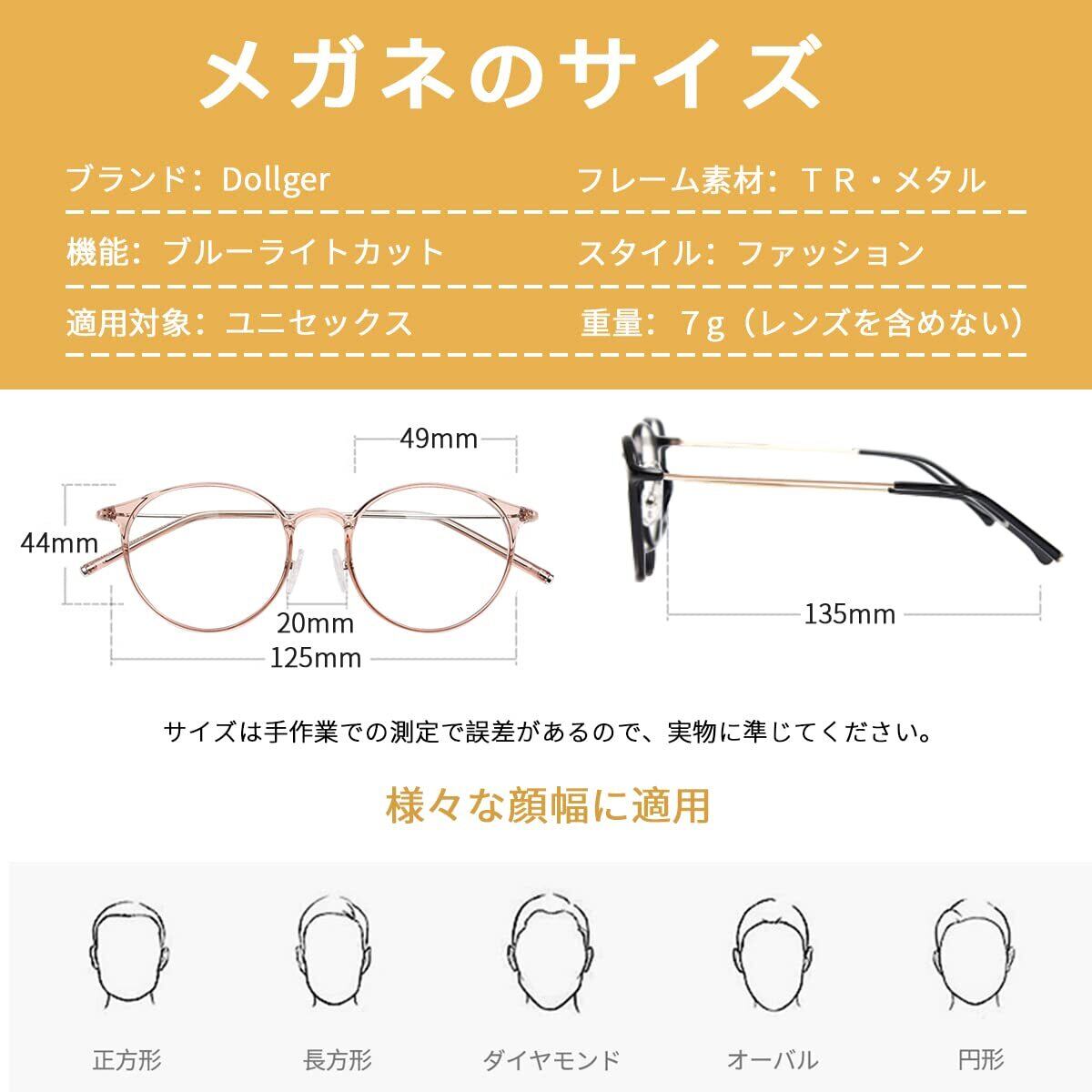 【ブルーライトカット・UV400保護】Dollgerのメガネは高品質のブルーライトカットの透明レンズを採用して、スマホ、パソコンやテレビなどのスクリーンからの目に有害なライトを遮断できます。UVカット率も99%に達成して、肌を老化させる原因と言われている紫外線をカットでき、紫外線防止対策になります。
