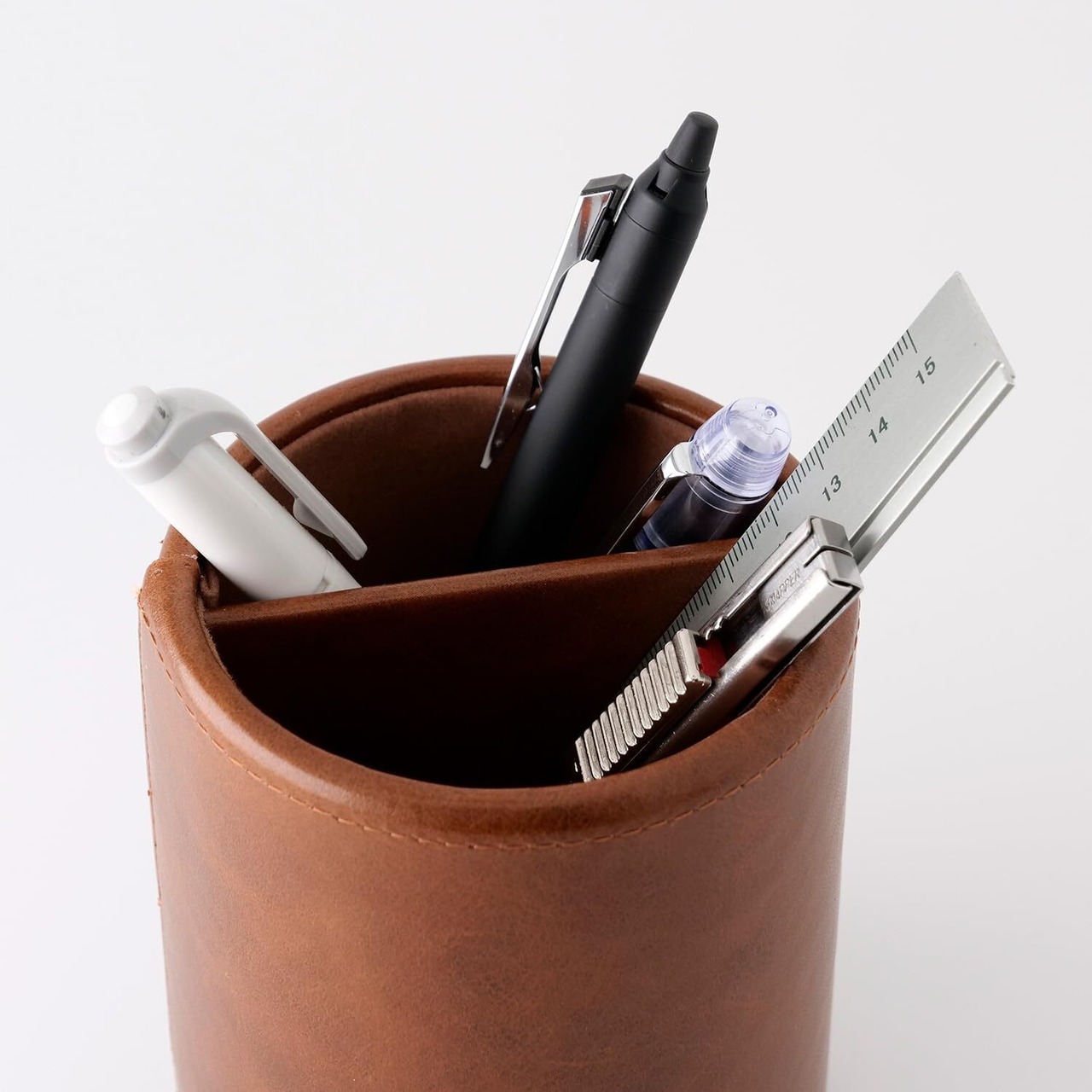 ●メガネや筆記具などを立てて収納できるラウンドタイプのペンスタンドです。