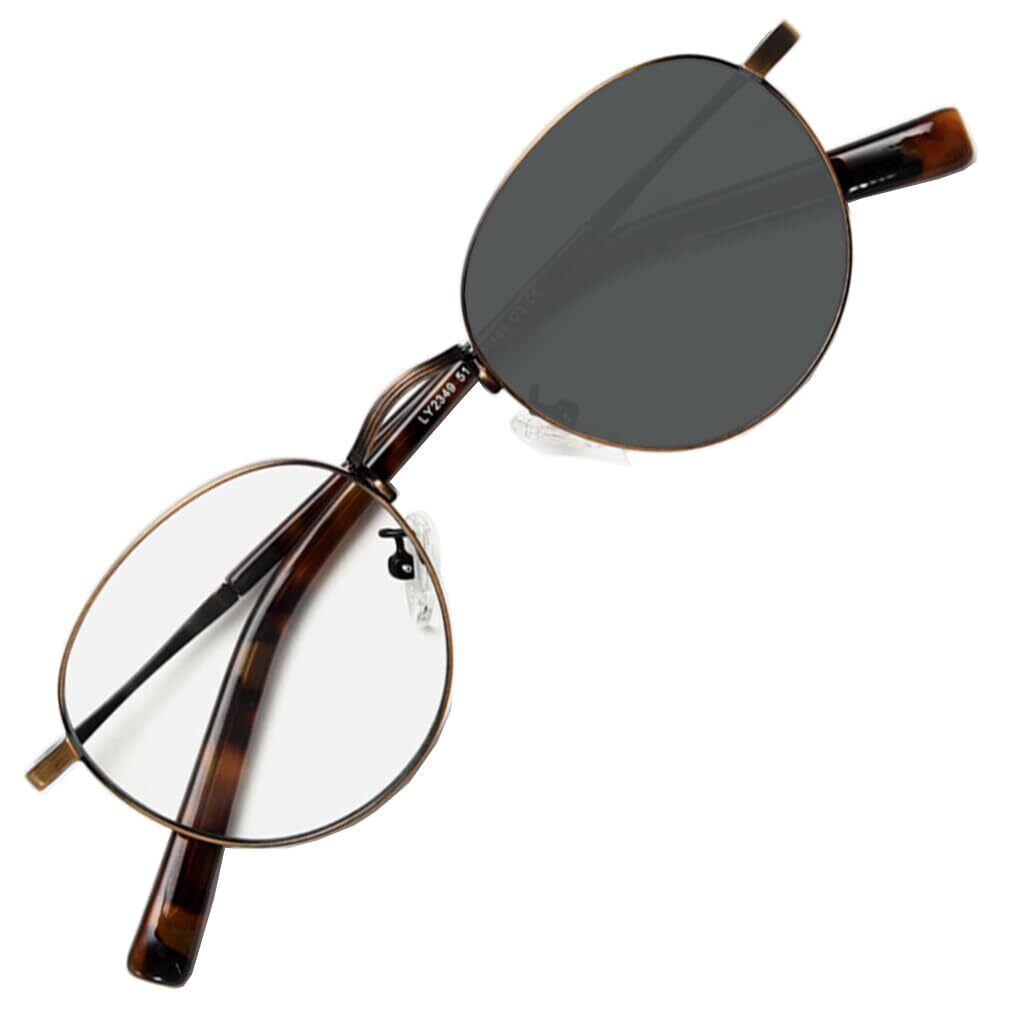 【特価セール】[PLOPLO] 強い太陽の光に照らされて 調光 変色 遠近両用 累進多焦点 円形 丸い 老眼鏡 有害光線対応可, 灯火の下でおよび室内変色しない