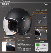 機能:・開閉可能なバブルタイプシールド装備 ・UVカット&ハードコート仕様のシールド ・あごひもは手軽に脱着可能なワンタッチ式バックルタイプを採用 ・内装は、一部にクールマックスファブリックを採用し快適性向上 ・メガネ着用時に負荷を軽減するメガネ用スリット装備 ・脱着可能な内装装備