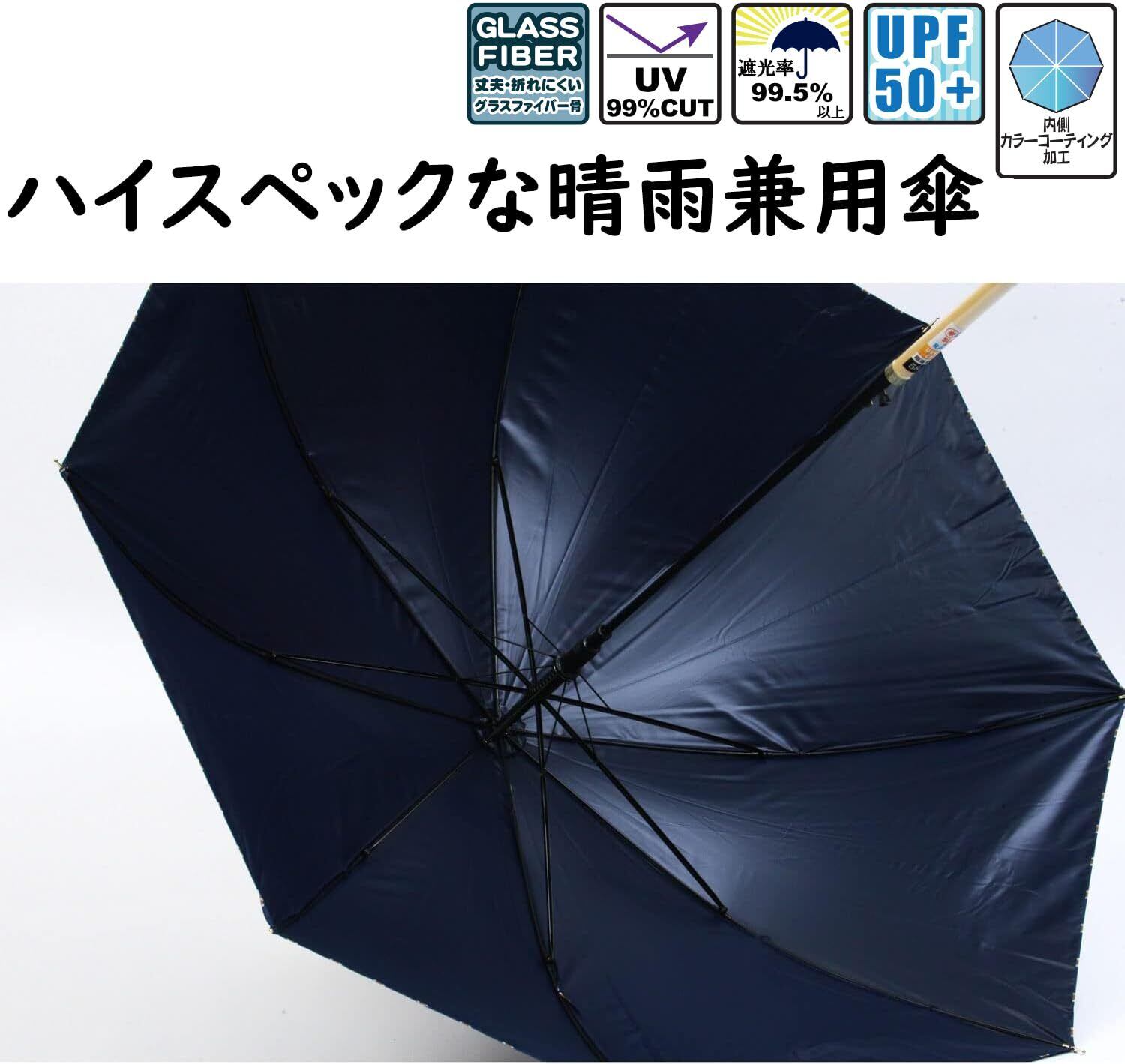 サイズ:親骨58cm、仕様:内側コーティング (1級遮光、UV99%、UPF50+)晴雨兼用傘