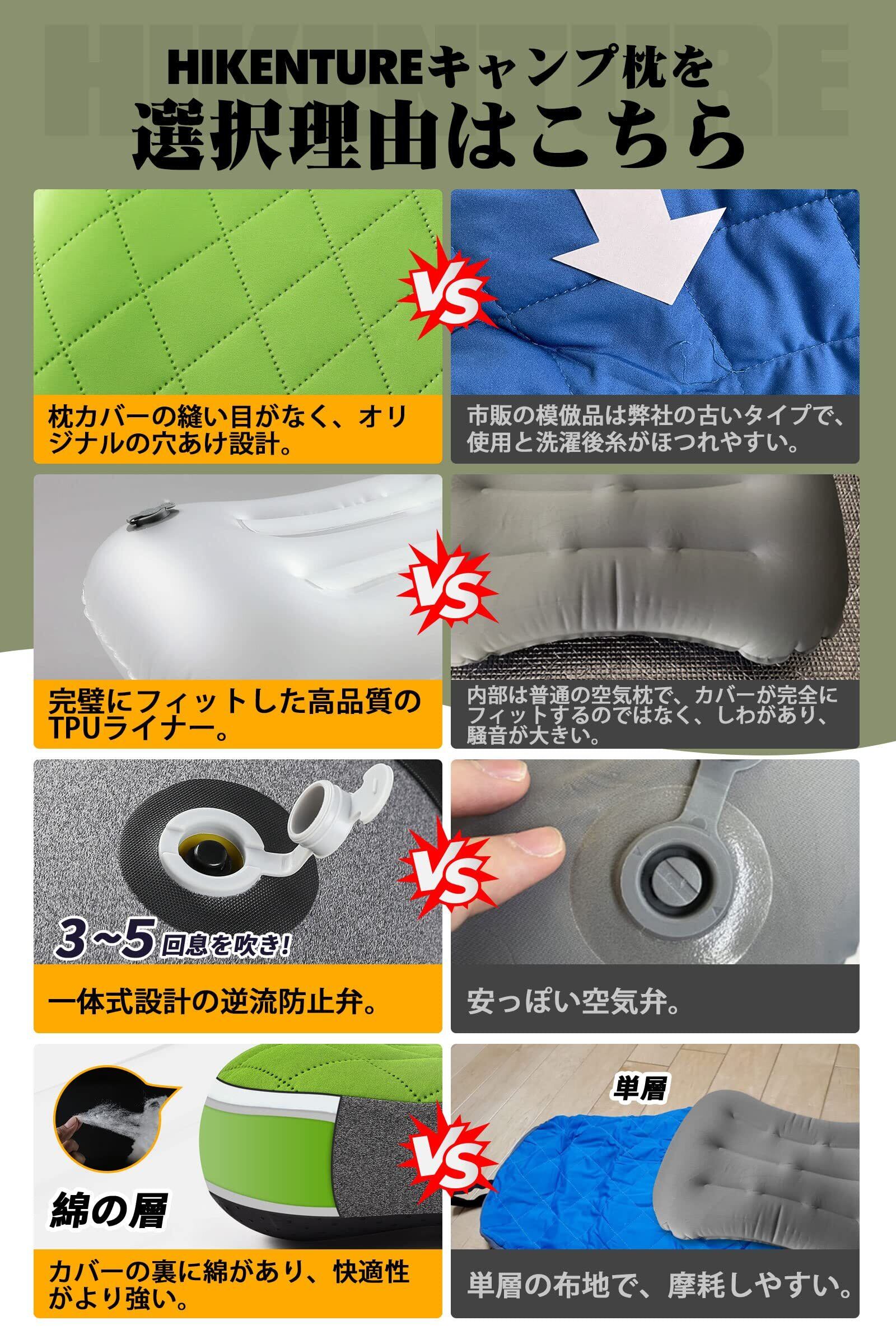 【数量限定】HIKENTURE キャンプ アウトドア 枕 【コットンカバー付き】 携帯枕 超軽量 エアーピロー 旅行 まくら 空気枕 腰枕 コンパクト 収納袋付き トラベル・車中泊・事務室