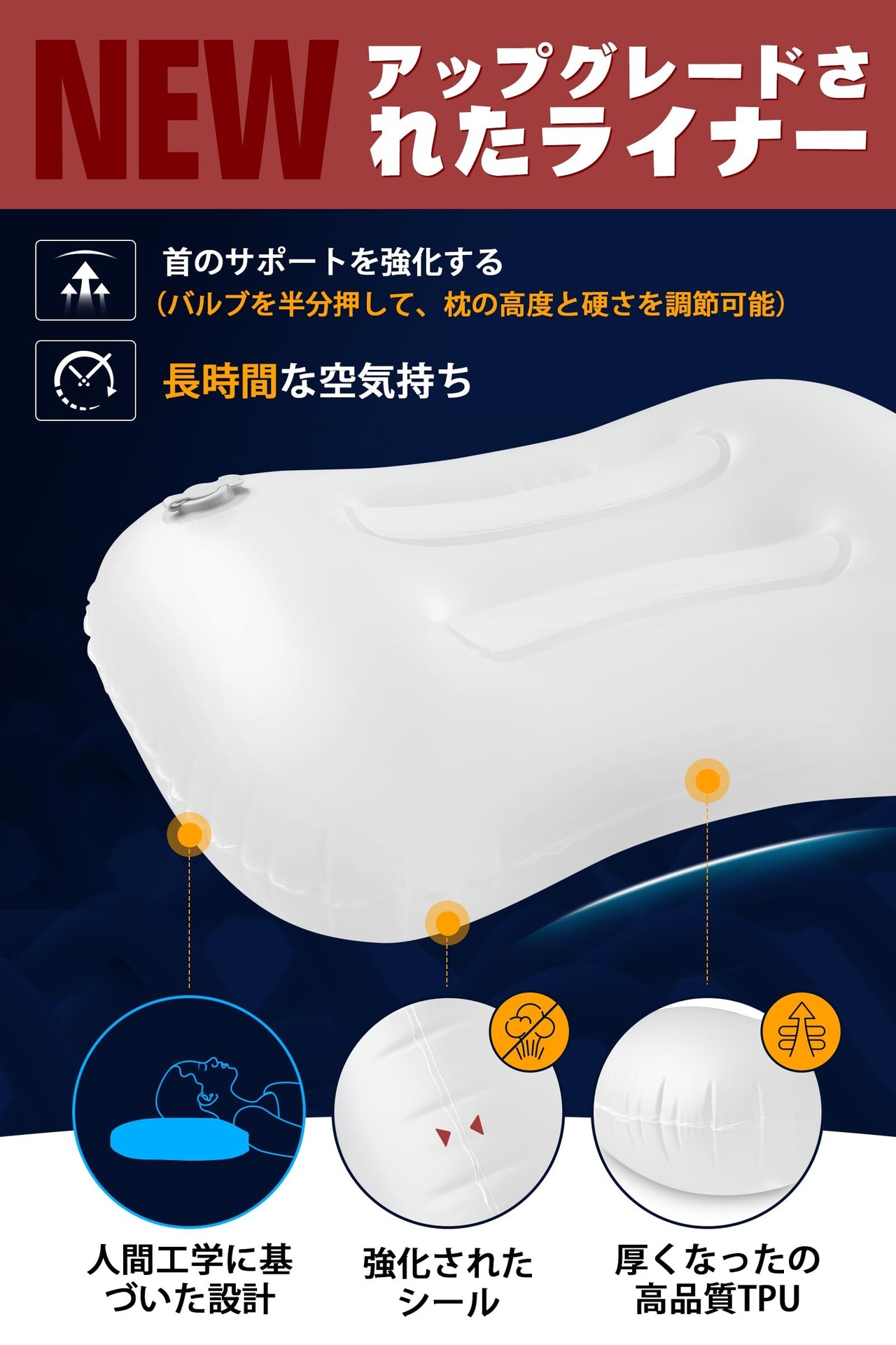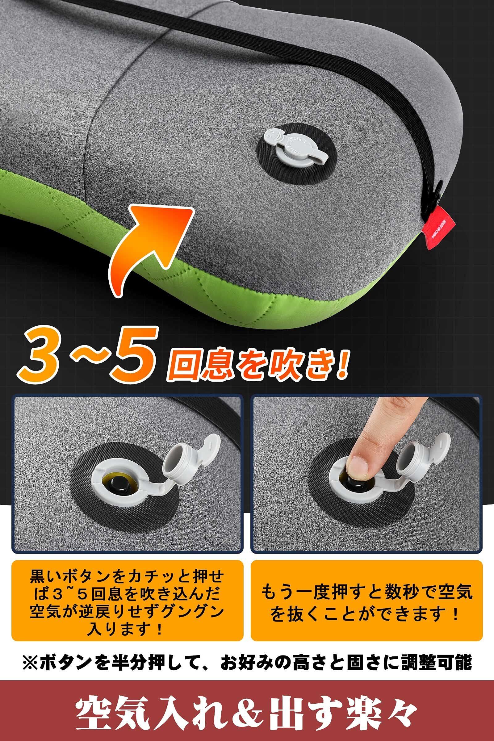 【絶妙な使用感・快適さはここから始まる!】このキャンプ 枕はコットンカバー付きで、通気性、柔らかの触感を提供します。枕カバーが汚され場合、クリーニングのために取り外すことができます。人間工学に基づいたエアー枕は、背骨の自然な曲がりをサポートし、肩こりや腰痛に別れを告げます!