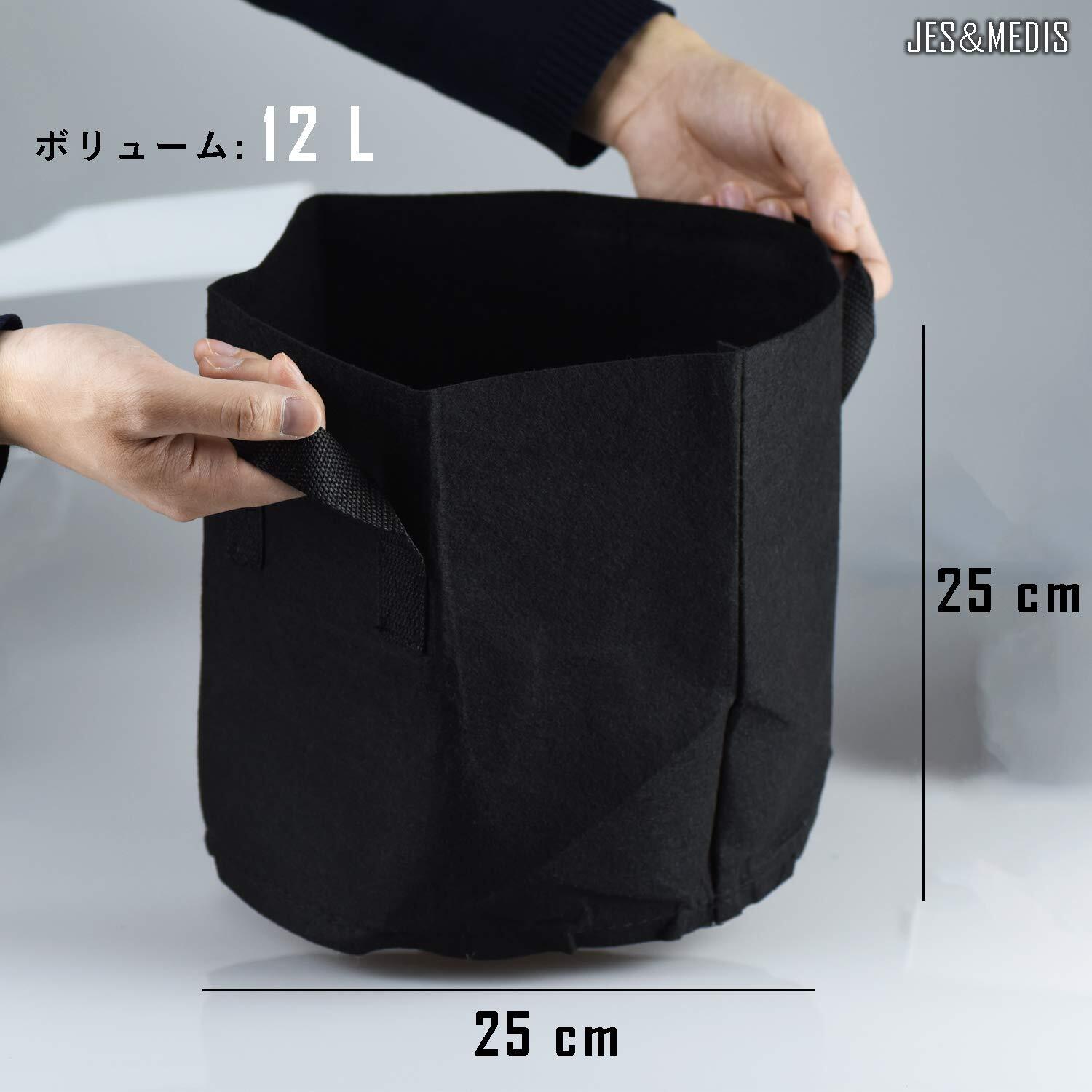 素材:環境に優しい不織布、6pcs、3ガロン(12L)、サイズ:高25 X 直径25cm、重量:約80g *6 カラー:ブラック。