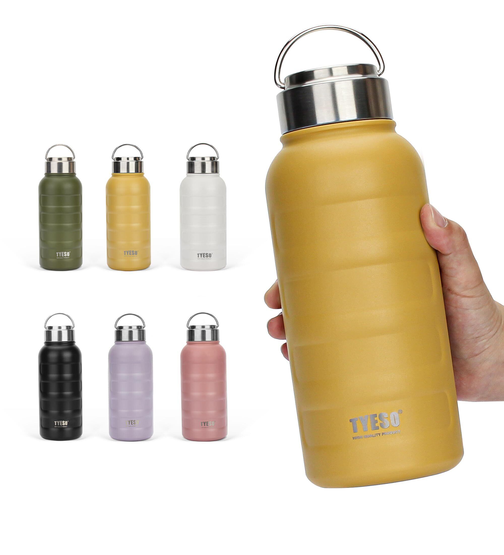 TYESO 水筒 魔法瓶 マグボトル 真空 断熱 スポーツボトル 直飲み ステンレス 2重構造 広口 ハンドル付 大人 子供 0.75 / 1リットル (750ml, イエロー)