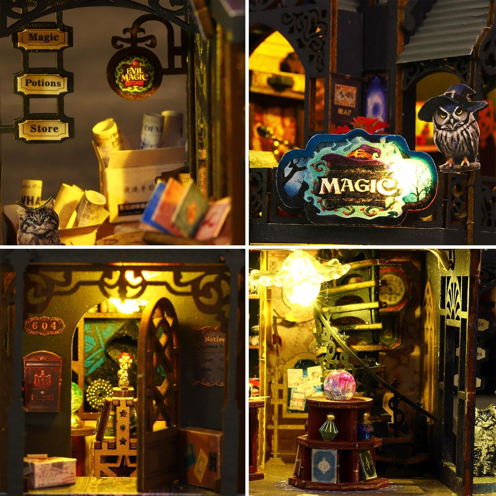 Spilay DIY 城建物情景のモデル木ドールハウス模型, ミニチュア ドールハウス 手作りキット セット 初心者向け-(マジック ハウス)+LEDライト、防塵カバー -誕生日、休日、クリスマスプレゼント (Holo MAGIC CITY)