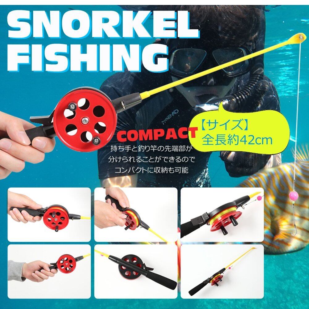 【泳ぎながら釣れる新感覚】シュノーケリング中に魚を探してそのまま釣れる!水中メガネと組み合わせて楽しむ泳ぎ釣り専用のコンパクト釣り竿。初心者やお子様でも簡単に扱え、海遊びがもっと楽しくなるアウトドア向けフィッシングセットです。