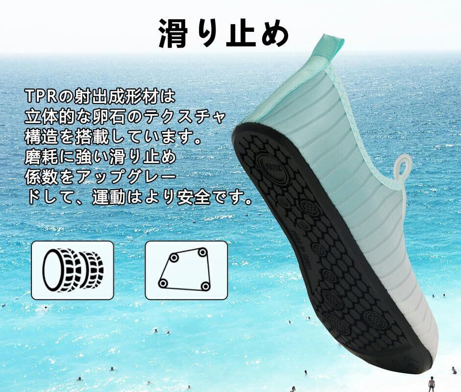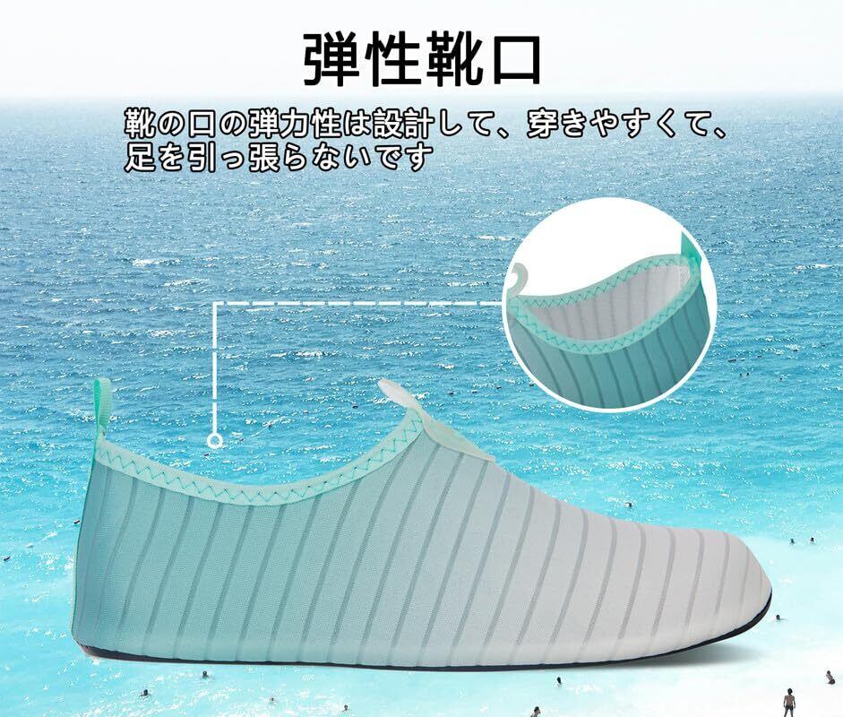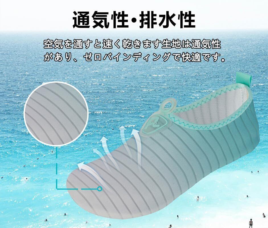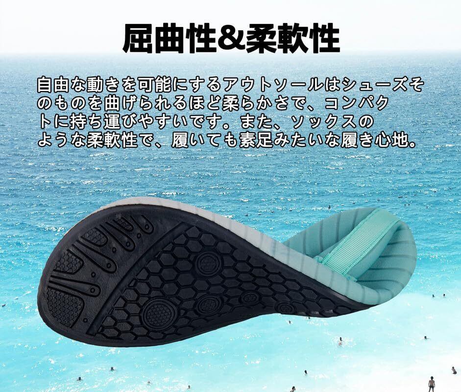 【便利&快適】ビーチサンダル代わりにサクッと履けて水の中でも、そのまま遊べる便利なマリンシューズ シュノーケリングなどのマリンレジャーの必須アイテム。すべてのアクアシューズは精巧に設計された高品質の靴底で、7つの排水孔を備えており、急速に排水して乾燥と空気を通すことができ、長時間履いても快適です。