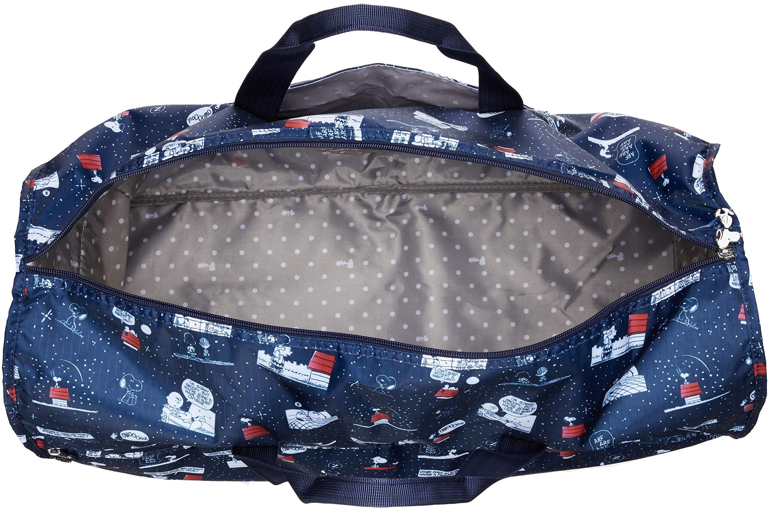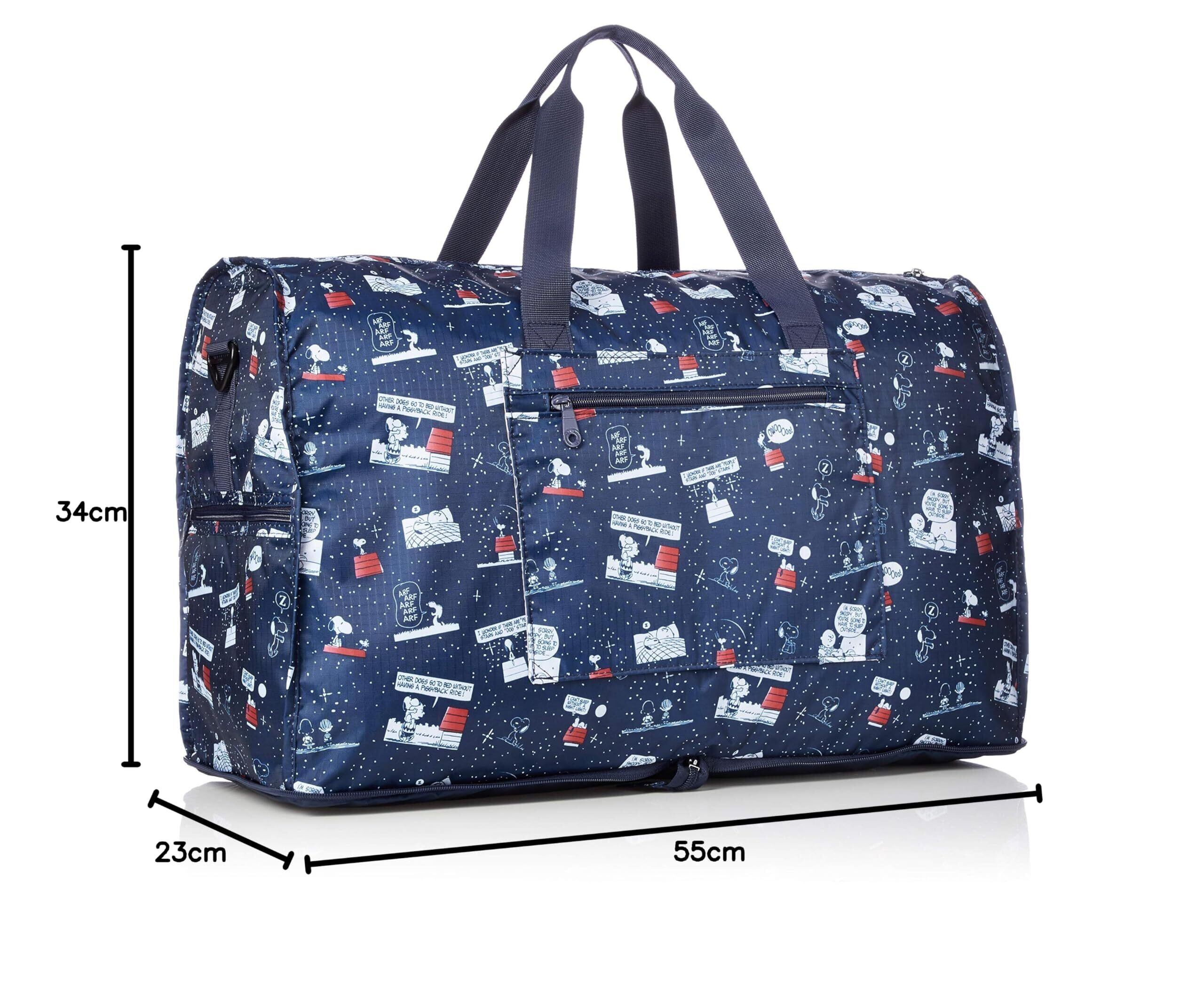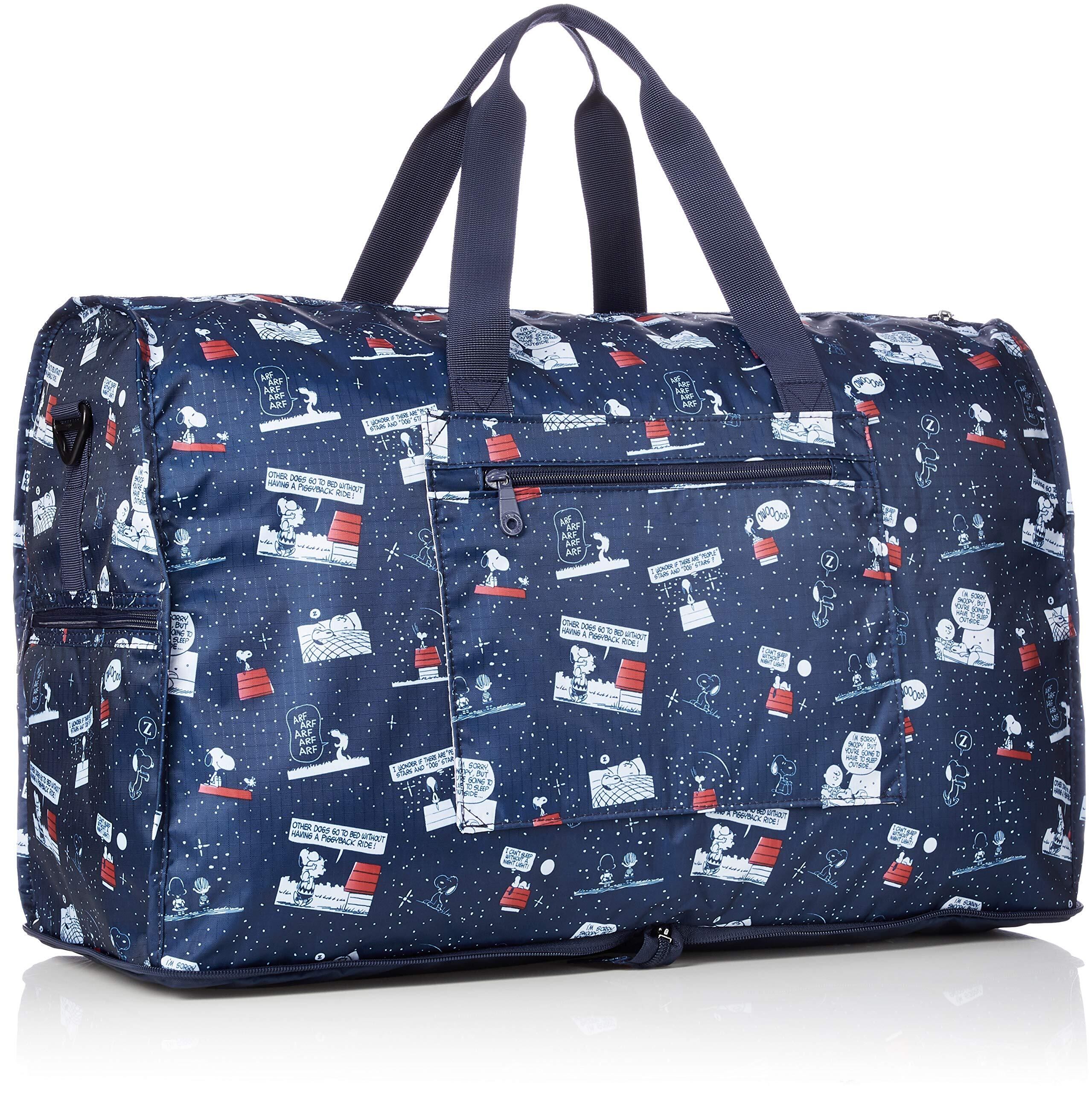 スヌーピーのコンパクトにたためる折りたたみボストンバッグ。