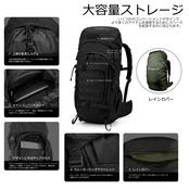 【大容量】大型のキャンプリュックはメインポケットの驚異的な収納力が、着替え、カトラリー、給水システムを対応します。フロントのジッパー開口部はメインコンパートメントとつながっており、荷物の出し入れがしやすい。