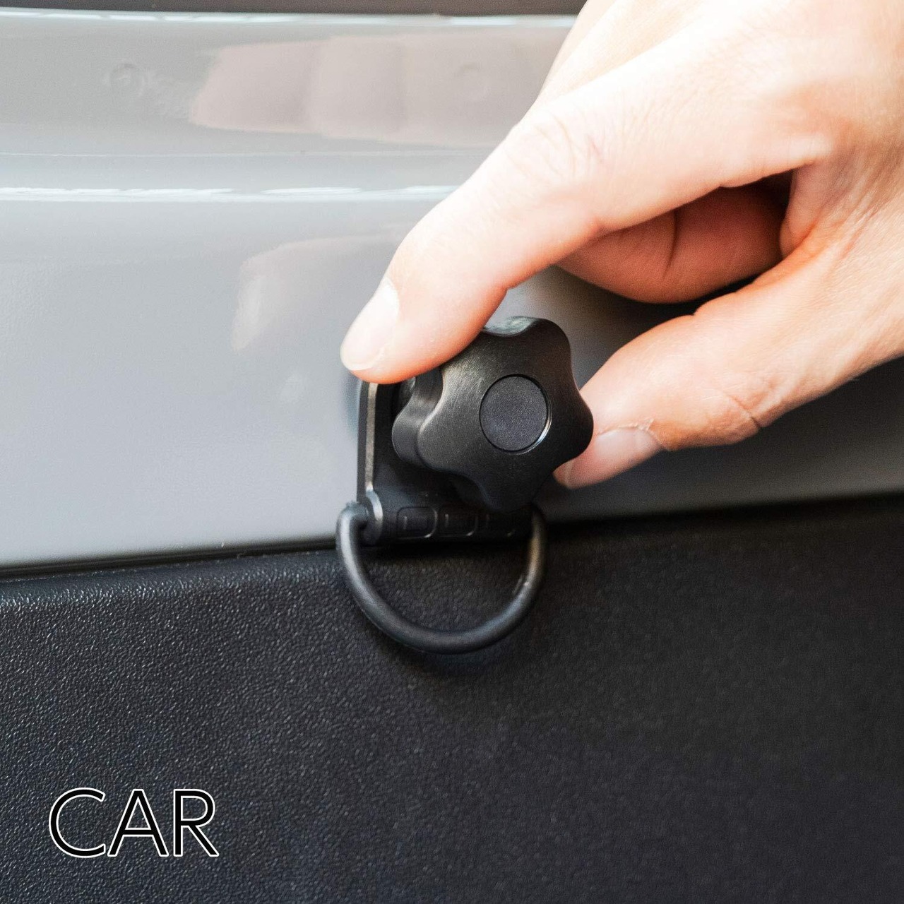 樹脂製フック/ゴムスペーサーでクルマに傷が付きにくい。工具不要で取り付け簡単。