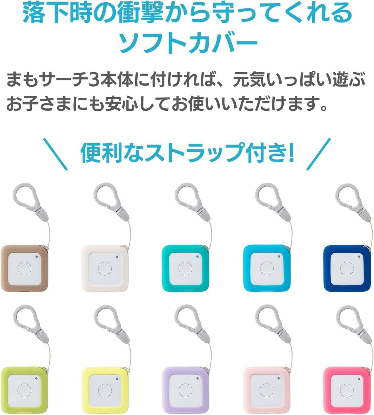 お子さまに人気な色、10色展開。ランドセルの色に合わせた色や、お子さまのお気に入りの色を選んで、まもサーチ3本体に着せかえて、楽しくおでかけ!