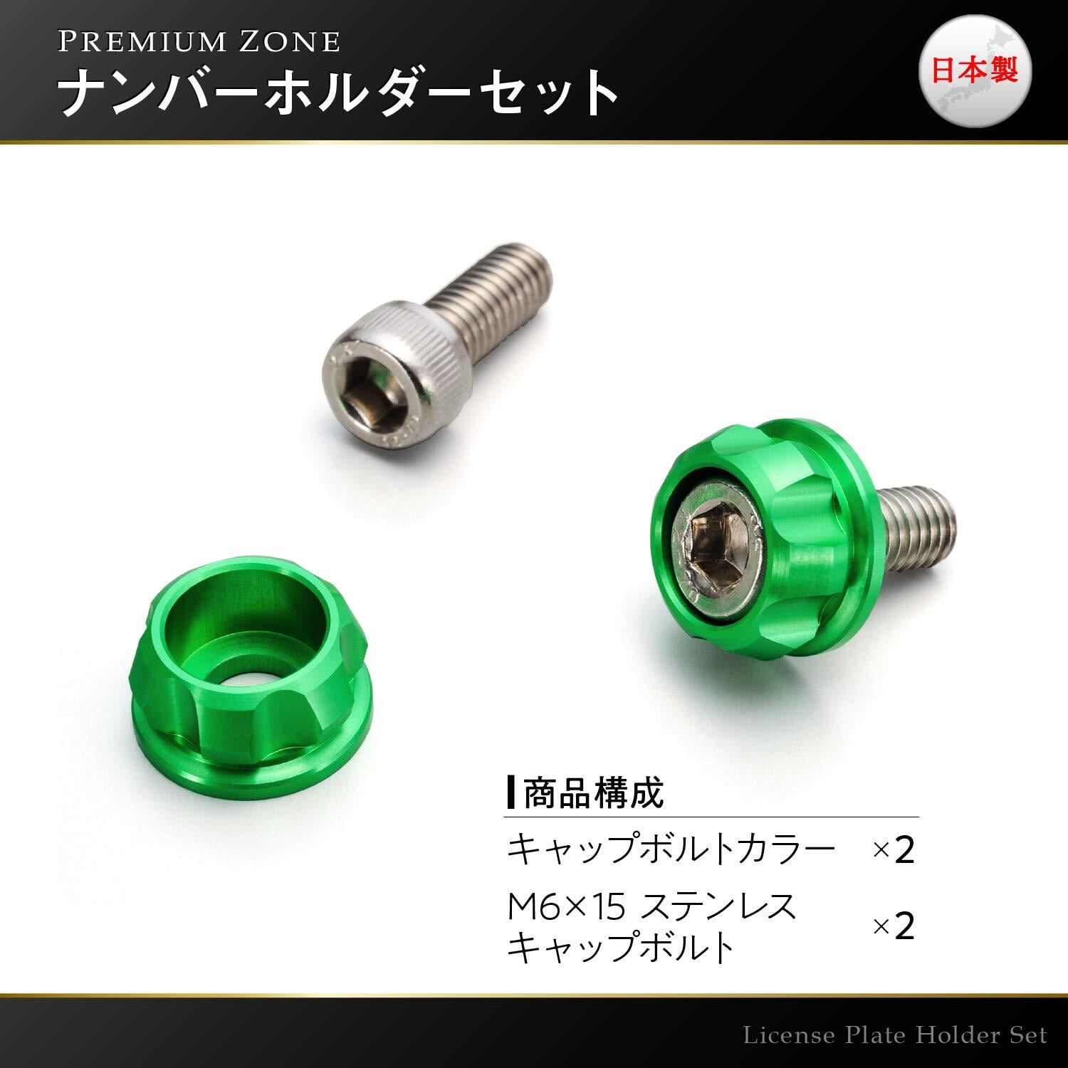 デイトナ(Daytona) PREMIUM ZONE(プレミアムゾーン) バイク用 ナンバープレート ボルト M6×15mm ホルダーセット 2個入り ライムグリーン 91948
