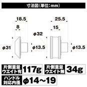 片側重量:ウエイト有:117g/ウエイト無:34g