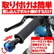 ●幅広く対応する汎用タイプのアルミビレッドバーエンド! ハンドルのドレスアップ、転倒時のレバー、スロットル、グリップの保護に最適です。