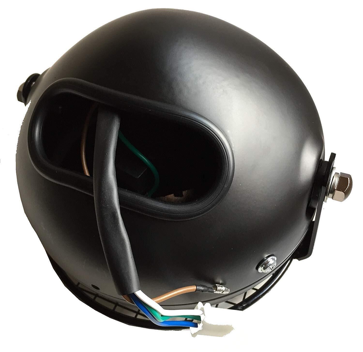 【在庫セール】Karun 汎用 12V ヘッドライト ガード付 ビンテージ バイク ブラック (タイプ2 イエローレンズ)