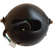 本体は金属製でつや消しブラック、レンズはガラス製で雰囲気のあるヘッドライトです。