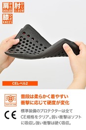 【用途】肩、ひじ、ひざ用に使用可能なプロテクター。体にフィットしやすいソフトな装着感と、衝撃を受けた際は瞬間硬化で体を守るを両立させました。