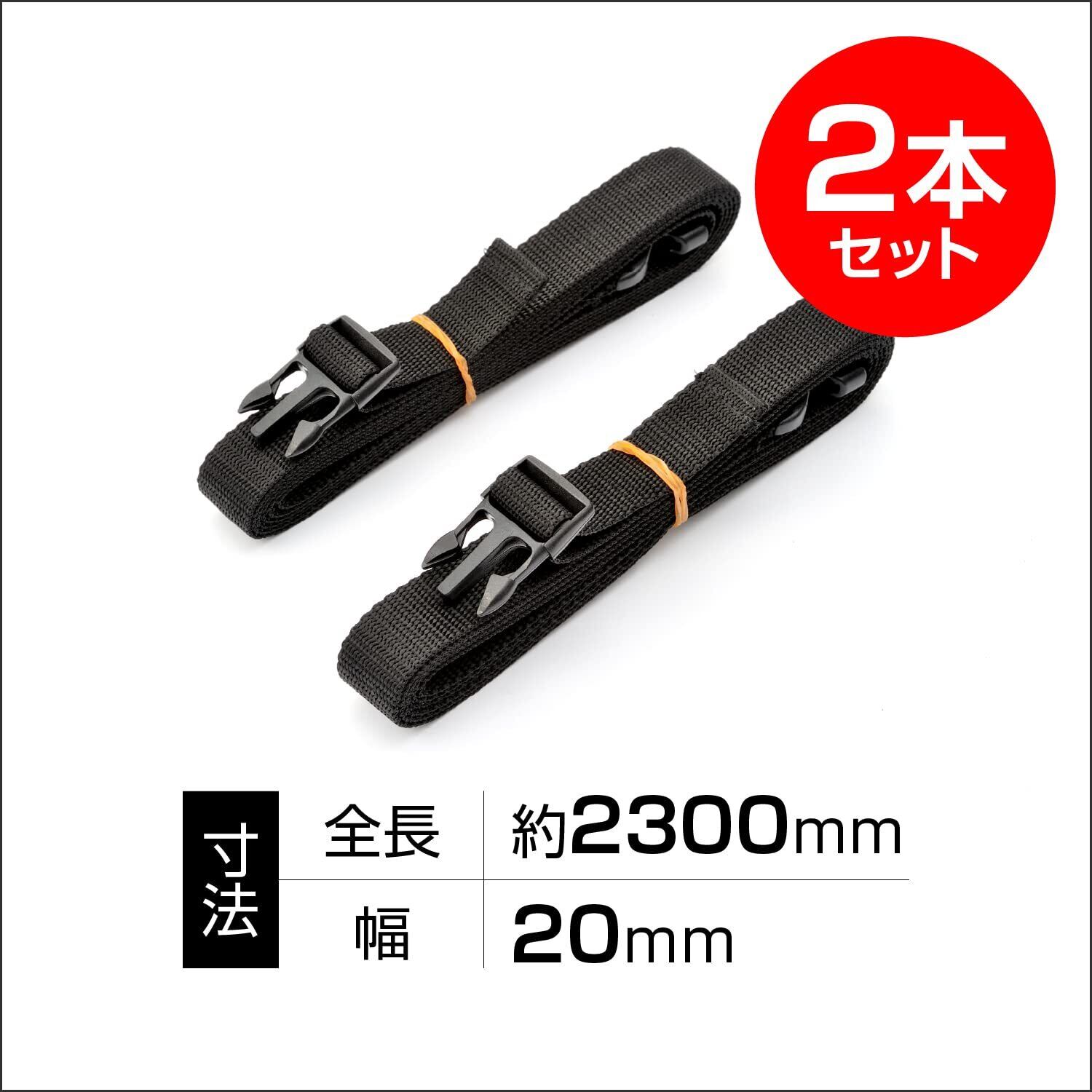 風でバタつくバイクカバーを固定するためのバンド。2本セット。全長約230cm。※淡濃色の車両はバイクカバーとのこすれによる汚れが付着する場合があります。※タンクシートカウルの角部は締め過ぎに注意してください。