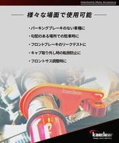 【不安定な駐車場でも】 スクーター など、パーキングブレーキ が無い車種で、サイドスタンド 化している場合や、勾配が急で ギア を入れただけでは 前輪 が不安な場合の 簡易駐車ブレーキ にオススメです。
