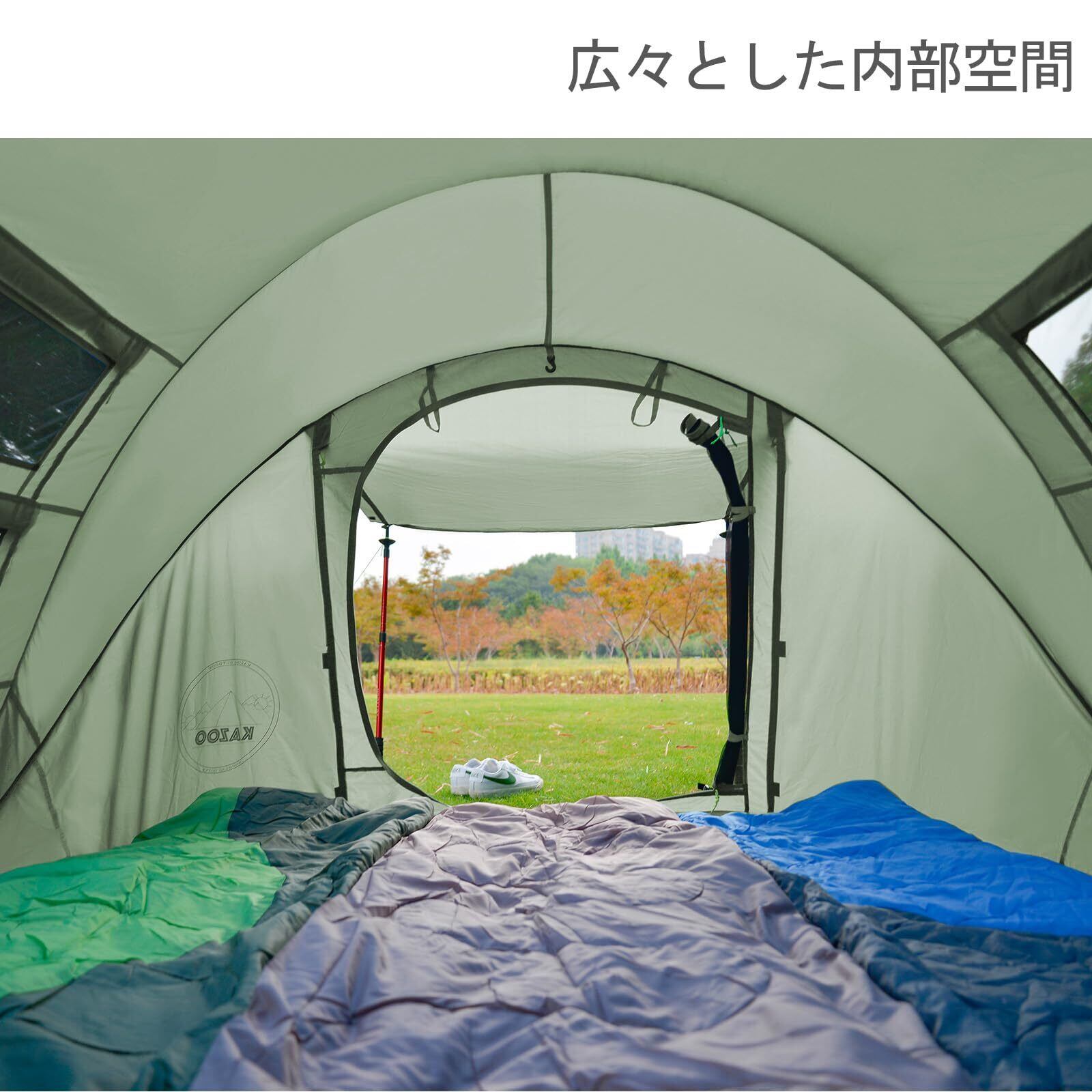「KAZOOのポップアップテントは、アウトドアをもっと楽しくするために開発された頼もしいアイテムです!4人用の広々としたキャノピーで、家族や友人とのキャンプに最適です。このテントがあれば、どこでも快適に過ごすことができます!」キャンプ愛好者には欠かせない商品です!!!