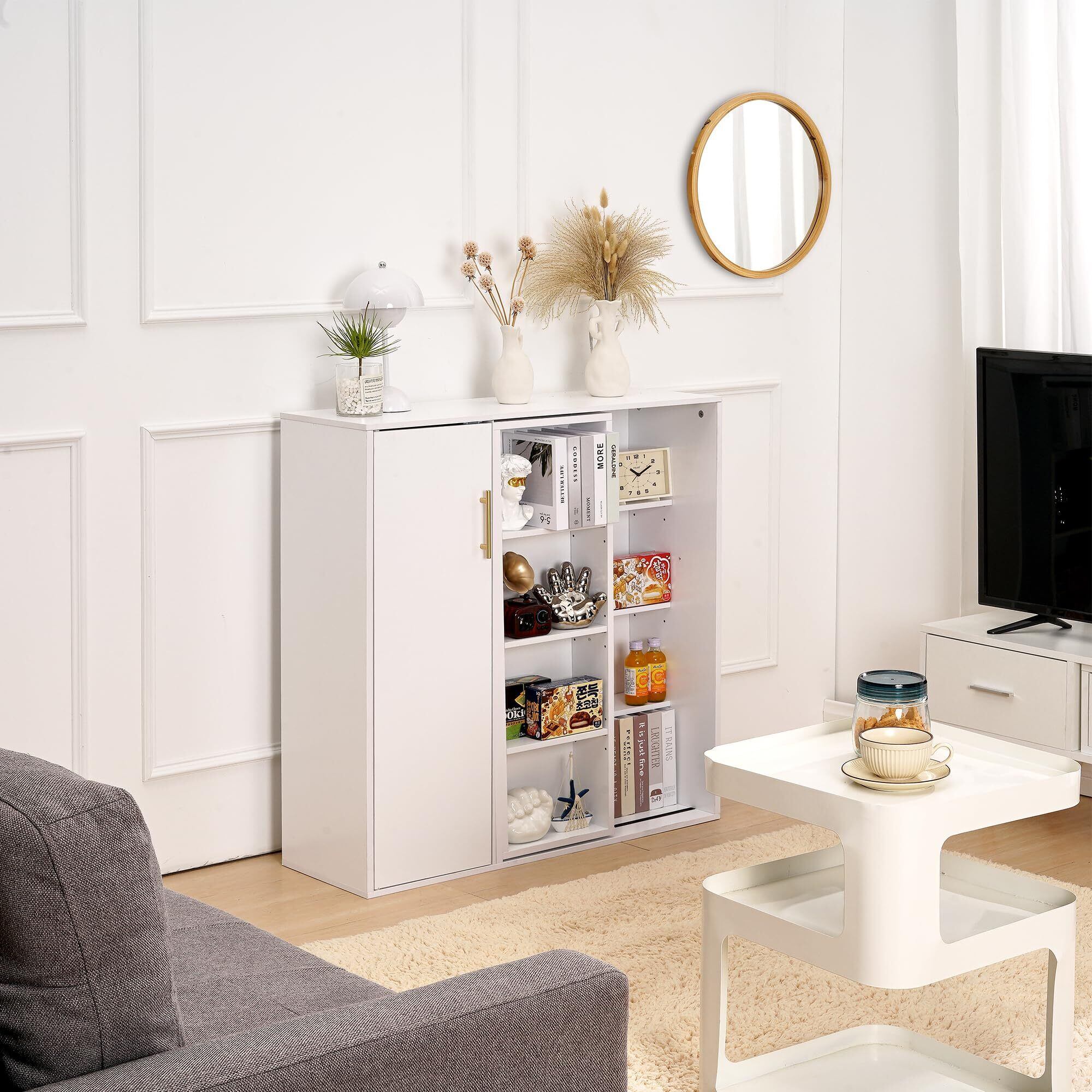 VECELO 本棚 扉付き 4段 幅60X奥行30X高さ90cm 大容量 スライド式 取っ手付き 収納力 手入れ簡単 安定性 収納棚 オープンラック 組立品 漫画 絵本棚 壁にピッタリ コミックラック キャビネット リビング 教科書 棚板可動 木製 寢室 CD収納 飾り棚 置物棚 書棚 キッチン ホワイト