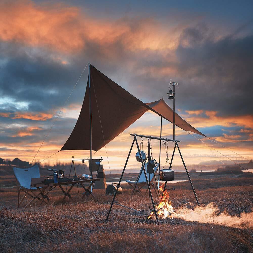 このランタンスタンドは物干しとしても、ランタンハンガーとしても活用可能です。料理器具やタオル、ランタンを思いのままに整理整頓できる便利なアイテムです。特にキャンプシーンでは、場所を取らずにアイテムを効率的に吊るすことができ、自由な空間を実現します。