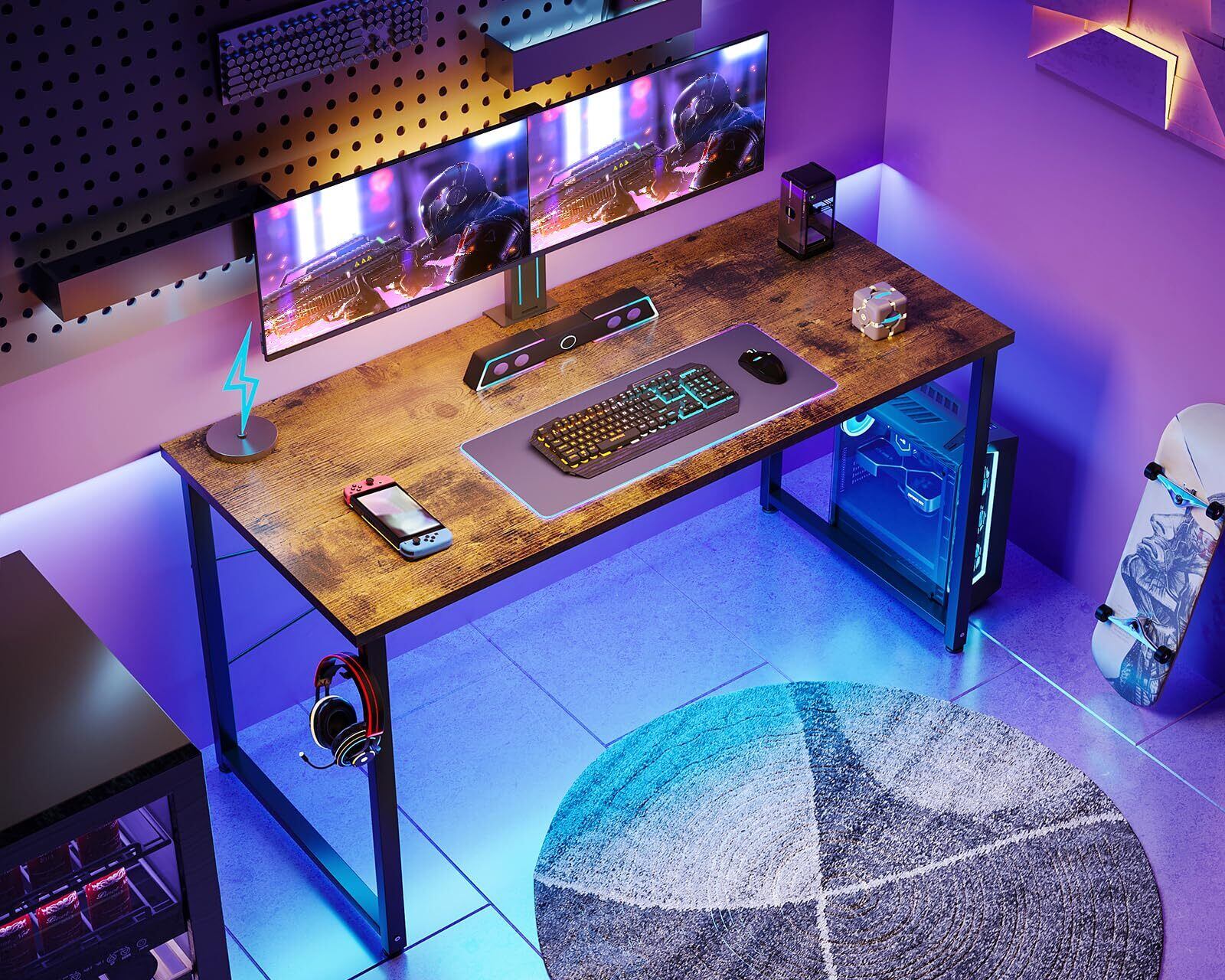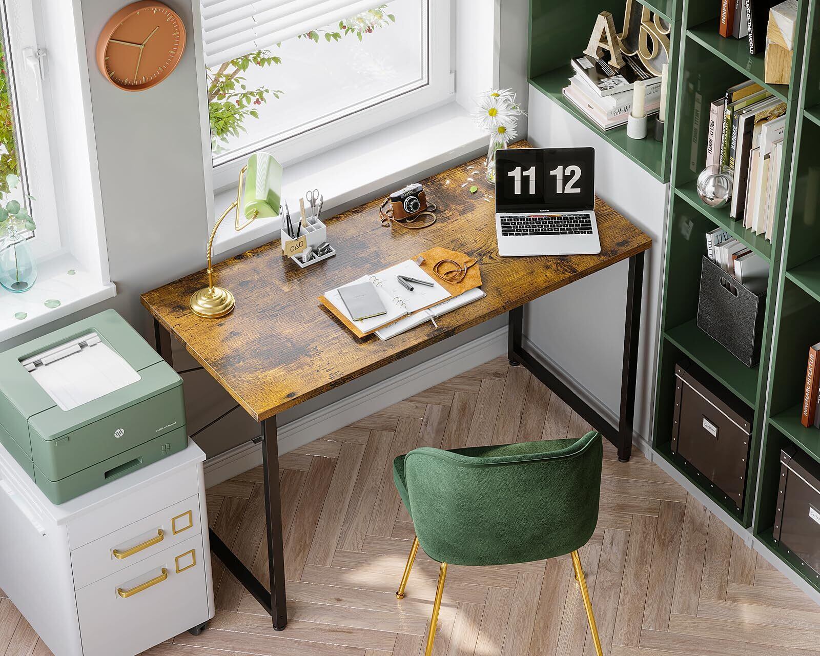 ODK デスク ゲーミングデスク 机 pcデスク 幅120cm パソコンデスク 桌子 ゲームデスク computer desk 电脑桌 オフィスデスク 学習机 シンプル コンパクト フック付き 在宅ワーク おしゃれ 組立簡単 ビンテージ