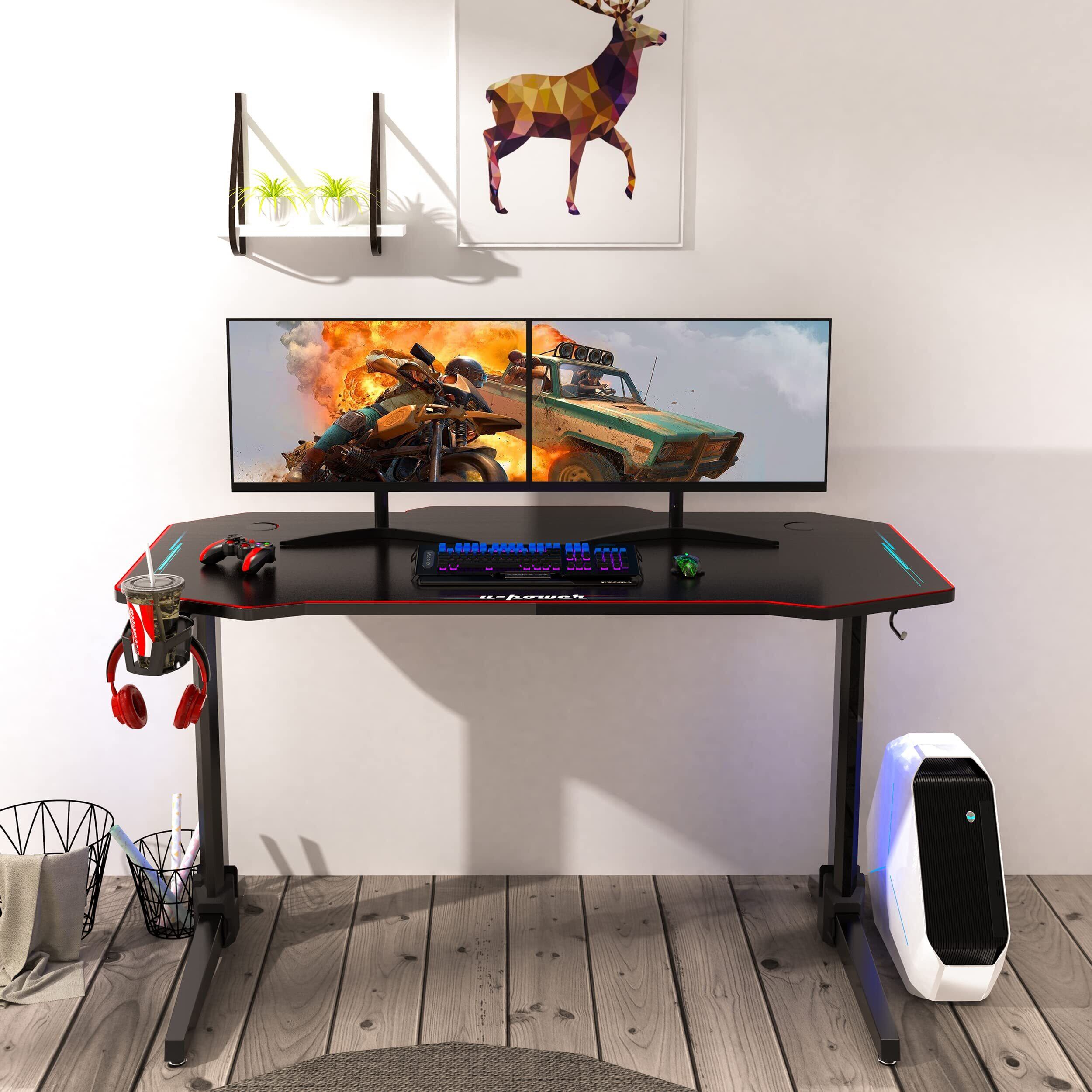 【安定性抜群、ぐらつかない】U-POWERゲーミングデスクは、重厚感のあるスチールTレッグを採用して耐荷重は150kgまで対応しております。さらに天板裏のスチール製フレームが天板をしっかり補強していて激しいゲーム操作にも耐えられる抜群な安定性があります。