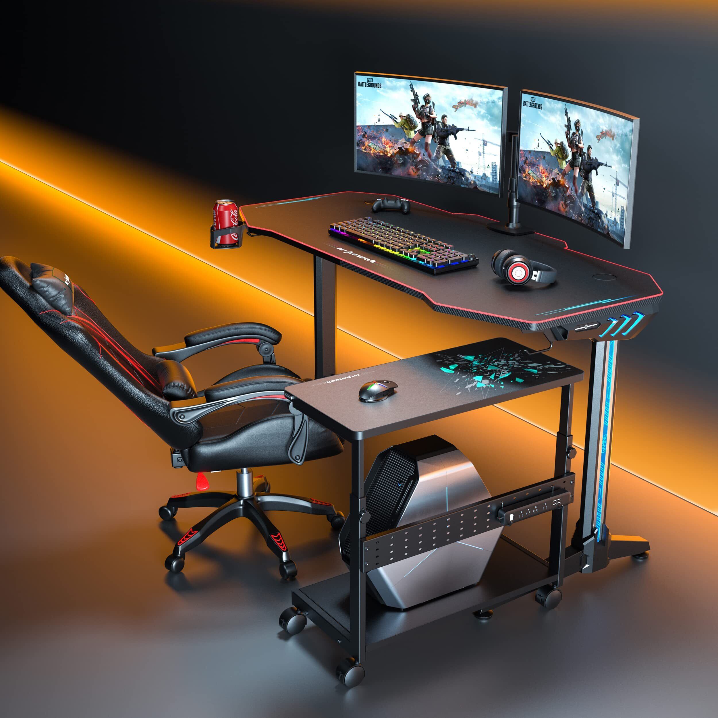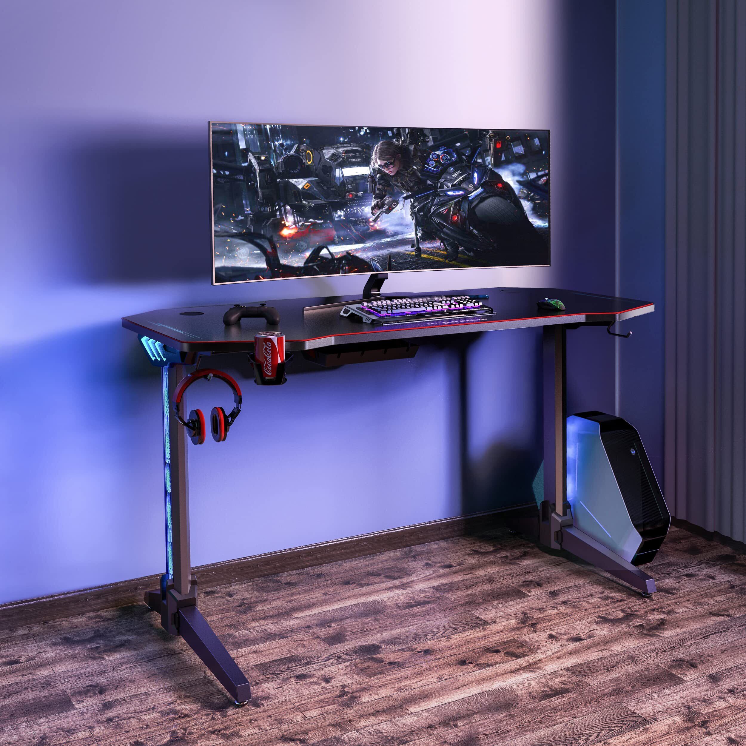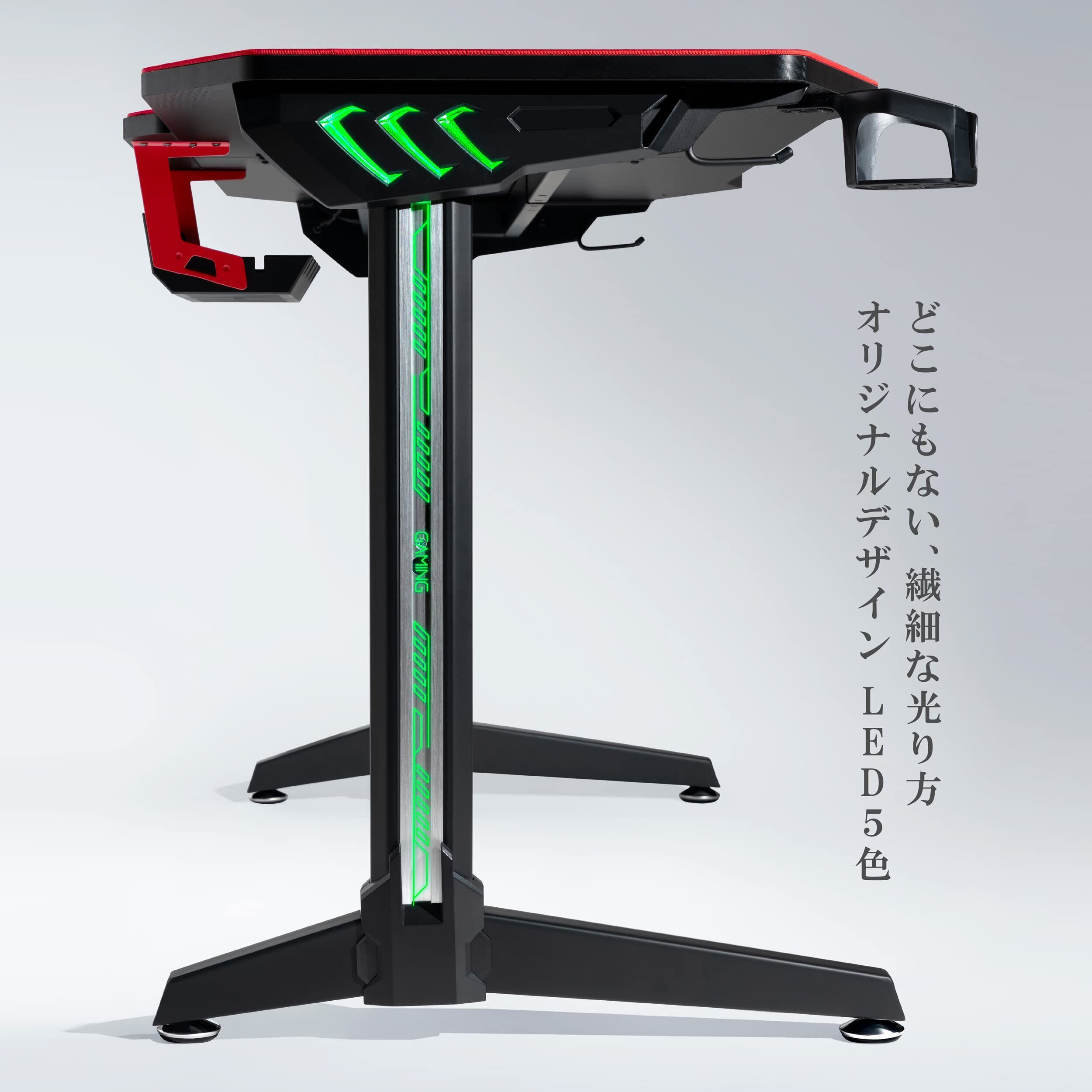 【新着商品】U-POWER ゲーミングデスク [日本メーカー監修] LED 幅140cm×奥行65cm パソコンデスク PCデスク 黒